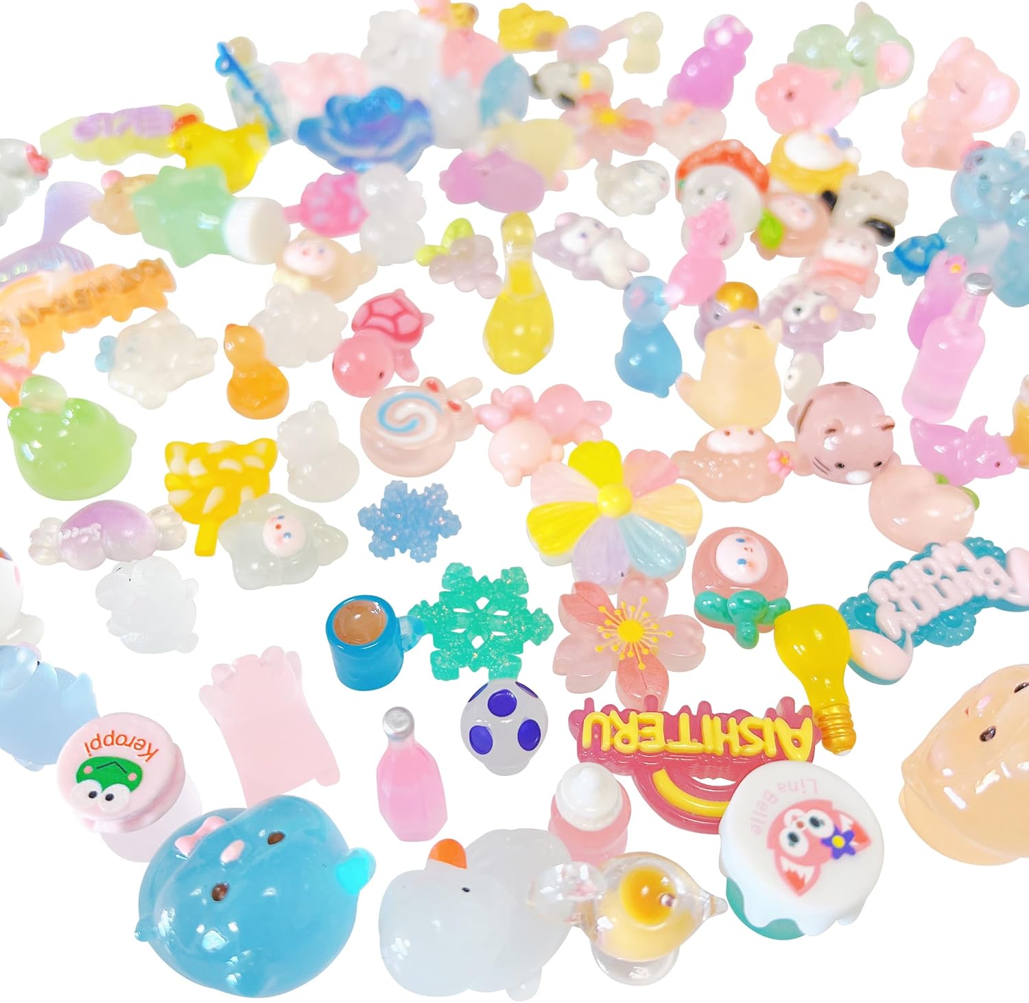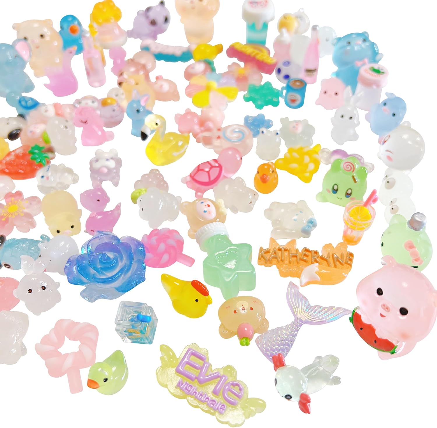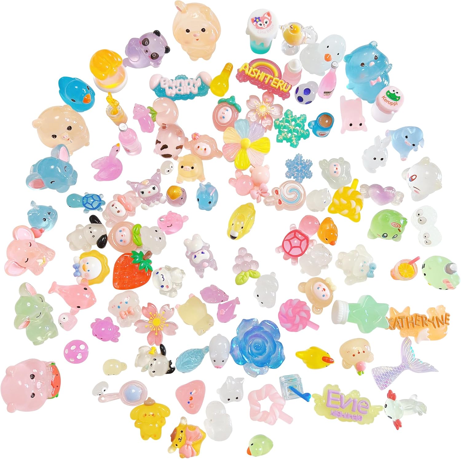 100pcs Mixed Luminous Animals Foods Cartoon Shaped by Random