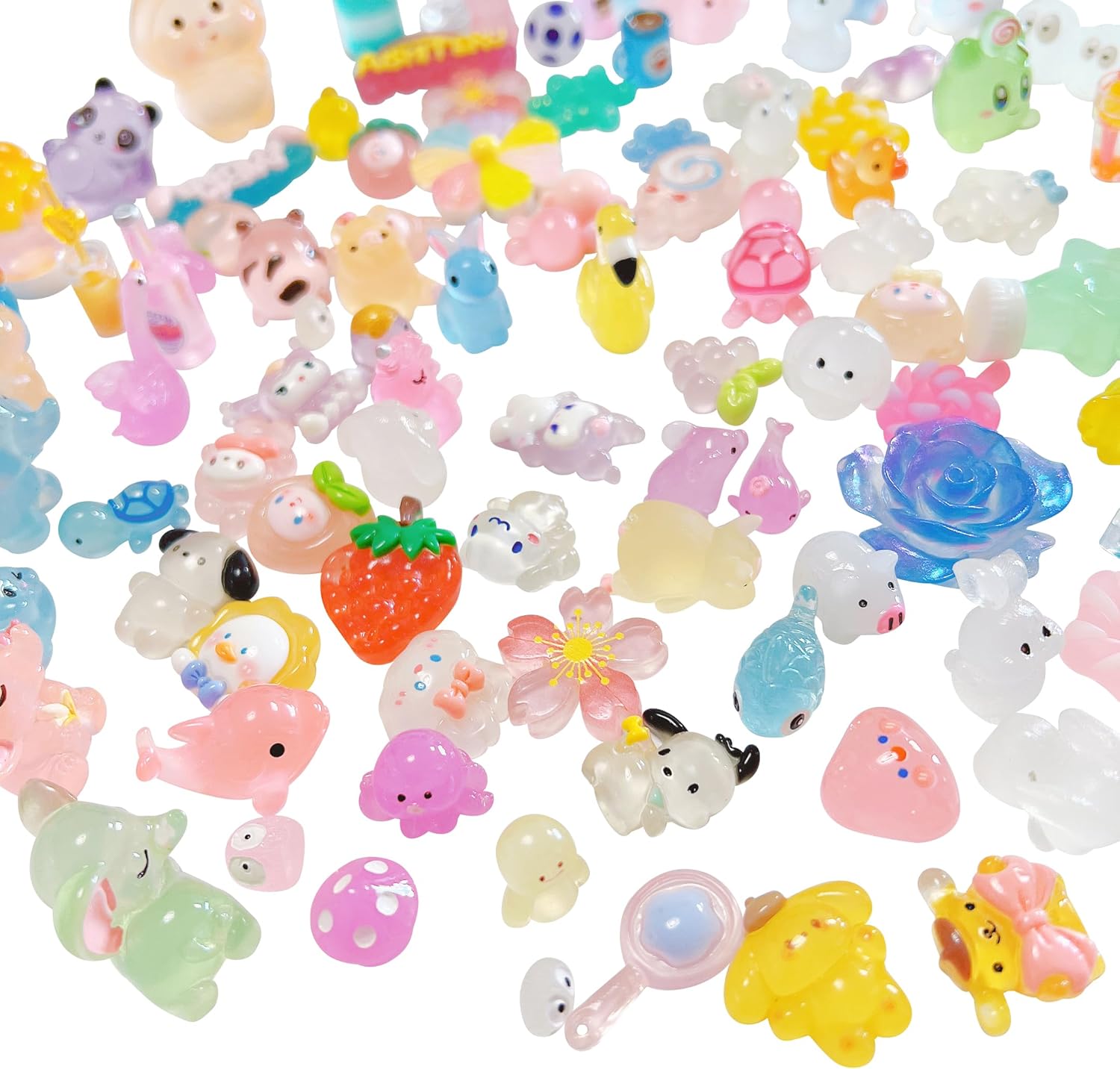 100pcs Mini Luminous Animals Food Mixed Style Decoration DIY Fairy Garden Landscape Aquarium Glow in The Dark Ornament Resin Sets