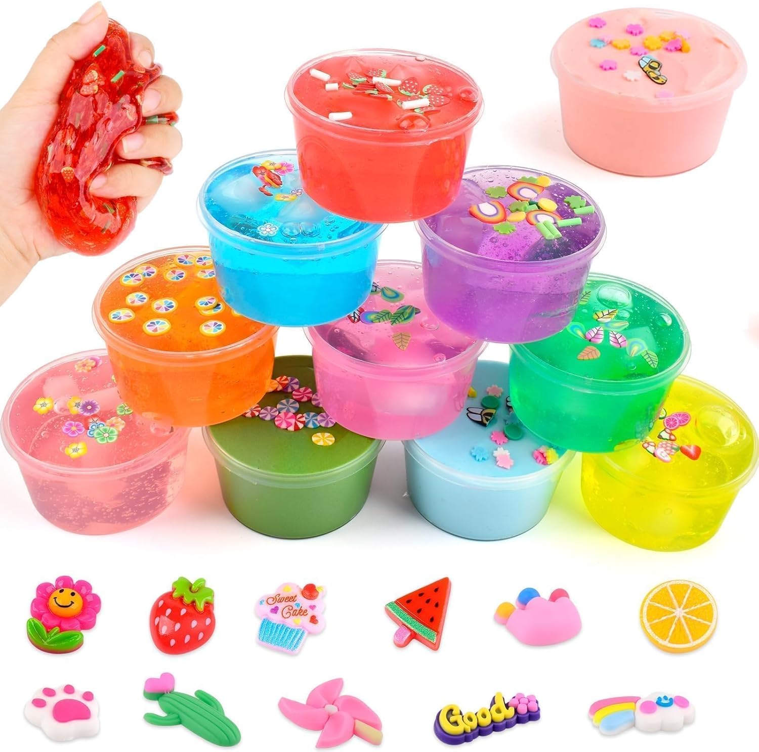 🍄 Kids Slime Making Kit: Comes with 11 pack slime kit, including 8 crystal clear slimes, 3 butter slimes and cute slime charms
