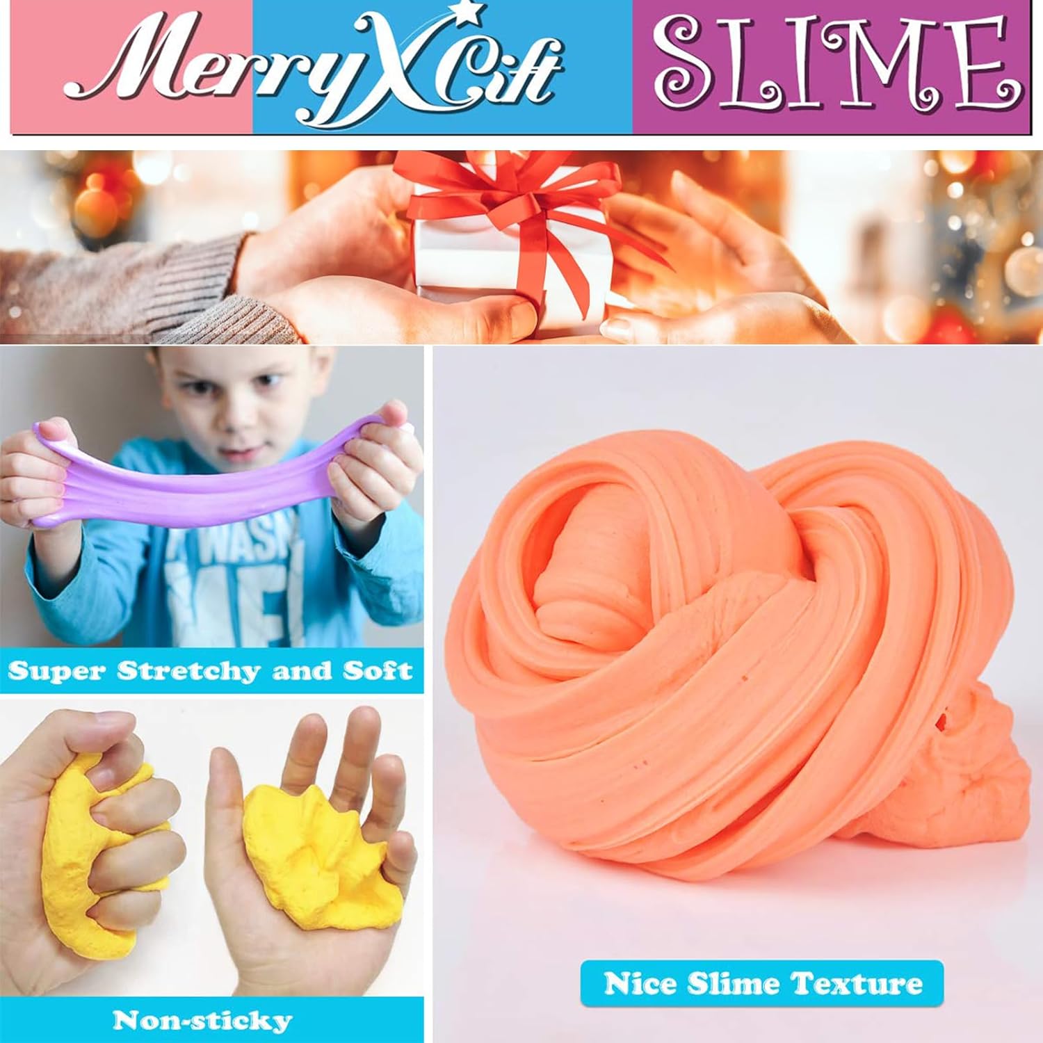 ★Not sticky: Slime super soft, free to pull, rub,fold, roll, not sticky, easy to clean.