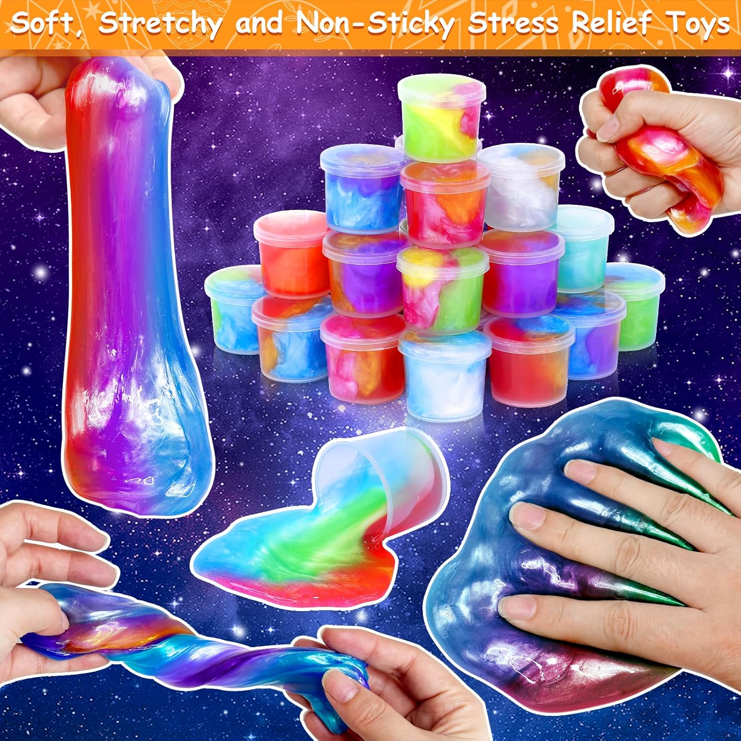 Stretchy and Fun to Play: This galaxy slime is soft, stretchy. Kids can pull, twist, fold, and shape it, helping develop motor skills, imagination, and creativity while providing endless entertainment.