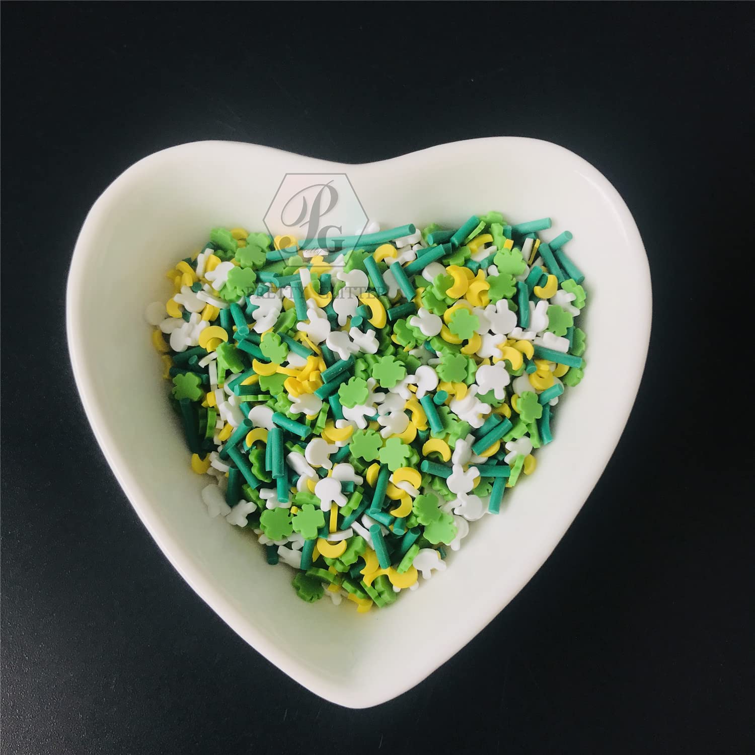 2ozs /Pack Four Leaf Clover Moon Rabbit Mixes Slices Supplies Polymer Soft Clay DIY Decoration for Resin Nail Art Slime Kit DIY Cake Dessert Simulation Food Craft Making RT-Green