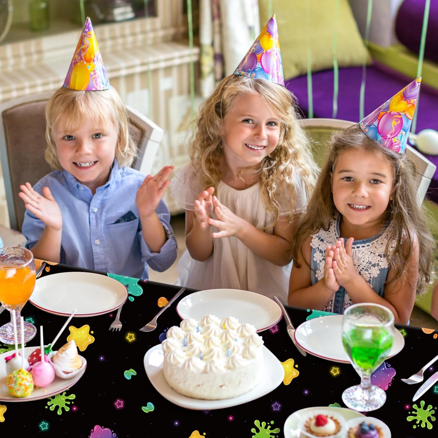 3 Pack Slime Party Tablecloths It’s Slime Time Art Table Covers 54 x 108 Inches Rectangle Glow Table Cloth Plastic Disposable Colorful Tablecloths for Art Birthday Party Decorations