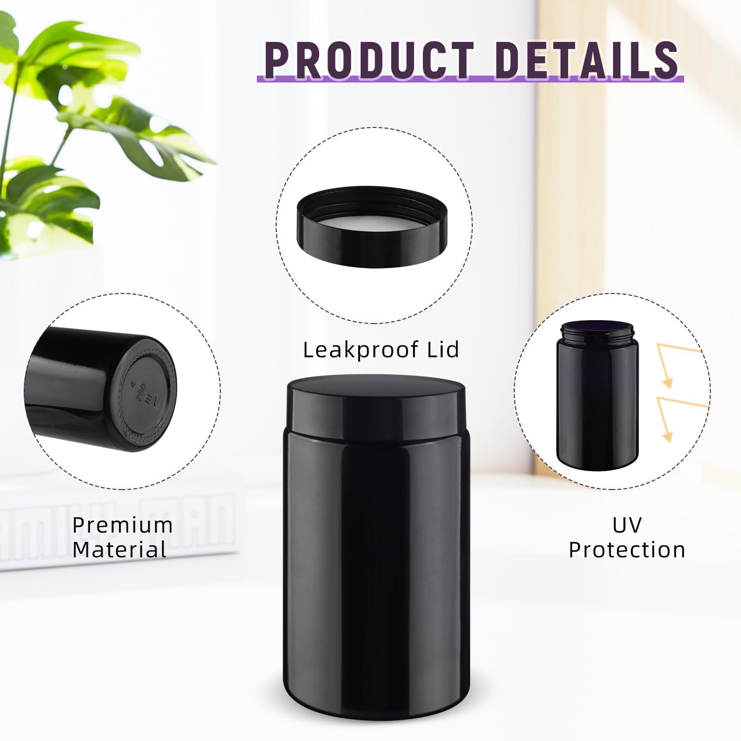 3 Pcs 200ml/6.7oz Black Glass Jars Empty Round Glass Containers for Coffee Powder Slime Makeup Cream Lotion Cosmetic