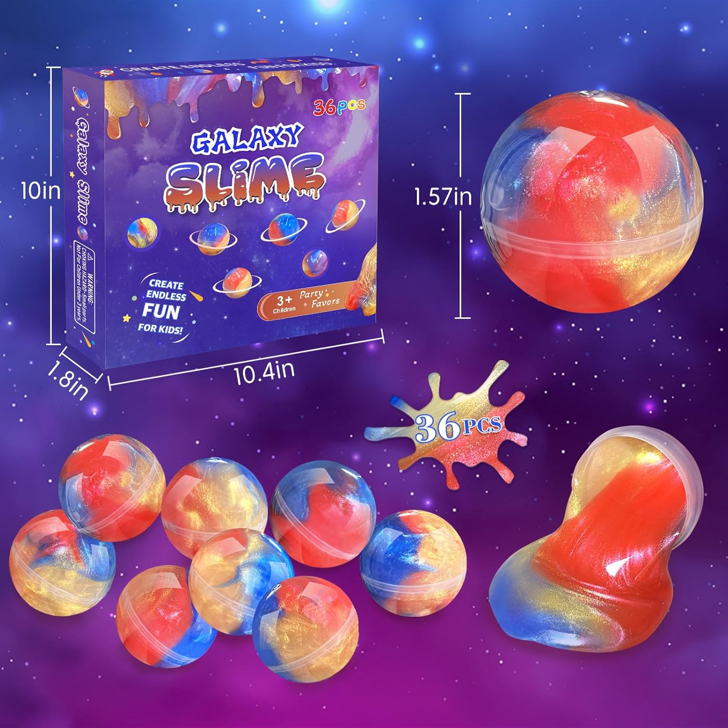 36 Pack Galaxy Slime Party Favors for Kids Glitter Slime Ball Bulk Stretchy Non-Sticky DIY Stress Relief Putty Toy Christmas Holiday Birthday Goodie Bag Stuffer Classroom Reward for Girls Boys