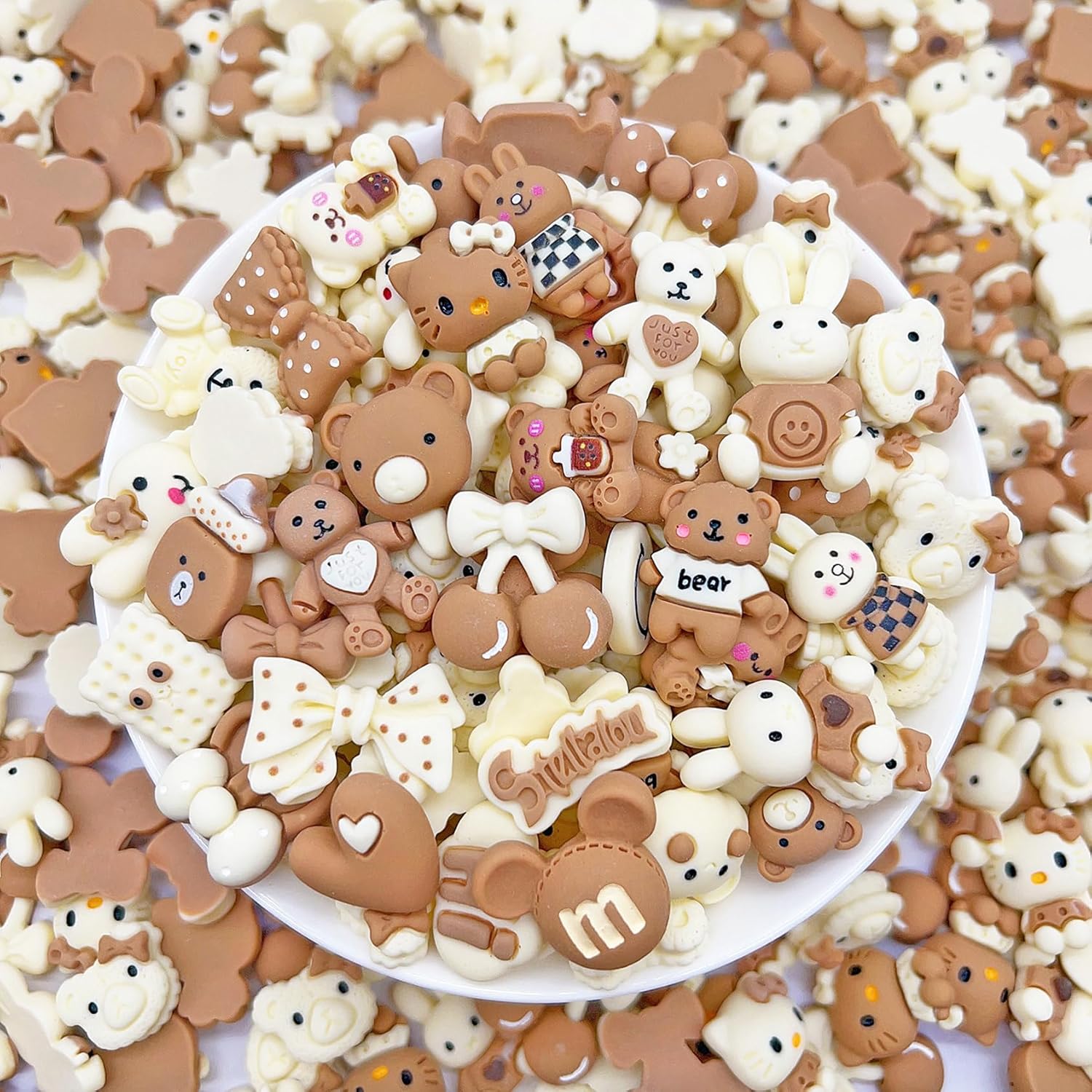 50 Pcs Flatback Cute Resin Slime Charms Bulk for Crafts, Flat Back Mixed Charms for Slime, Slime Charm Bulk for DIY Art Craft Making Kit (Brown Off-white)