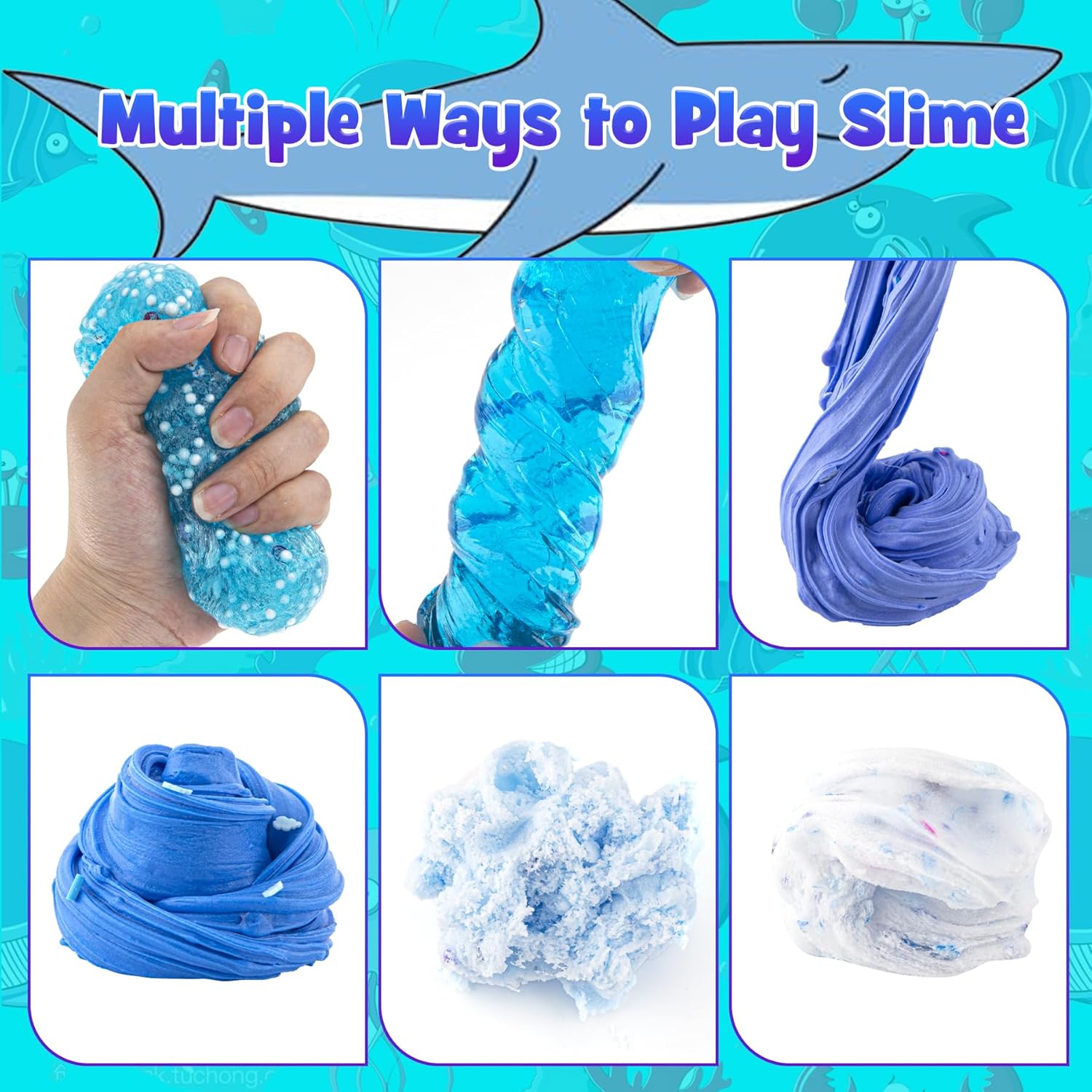 🐳【Non Stick & 100% Safe】Our ocean slime kit for kids is made of high quality raw materials, non stick, safe for adults and children, but please do not eat it! Please note that children under the age of 3 years old under the supervision of use.