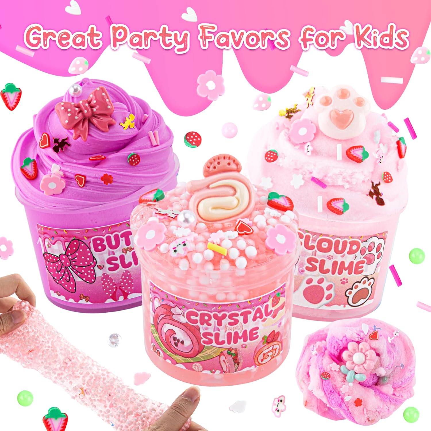 🌸【Slime Party Favors for Kids】This 6 packs pink slime kit with a wide variety of slime add-ins and cute slime charms, it is a party favour for kids and a great gift choice for all kinds of festivals, birthdays, Christmas, Easter.
