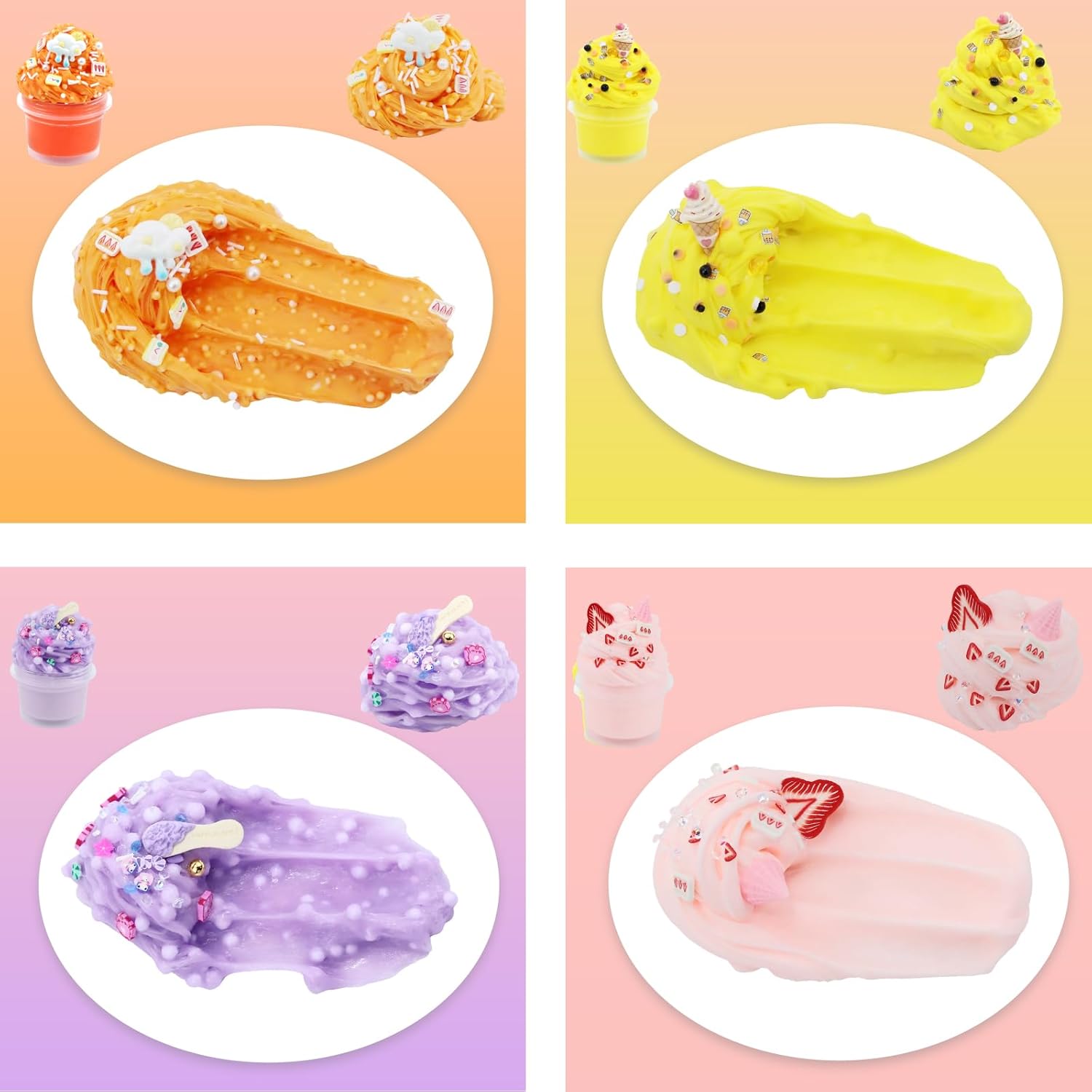 【Value Slime Kit】Our butter slime kit is soft, non-stick and easy to stretch. The clear slime kit with bubbles is very stress relieving as it is constantly stretched and squeezed hard, making a very stress relieving sound of frying bubbles. pink cloud slime and white ice cream slime kit that slowly stretches to resemble snowflakes for a very attractive appearance.