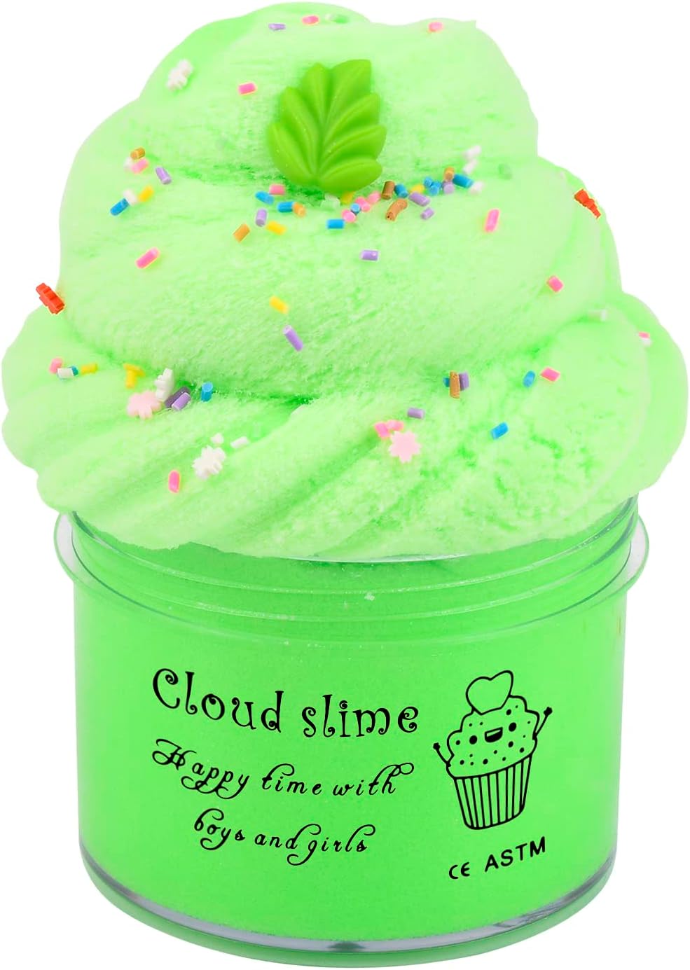 (7oz 200ML) Green Cloud Slime, DIY Stress Relief Toy Scented Slime with Cute Slime Fun Charms, Birthday Gifts for Kids Girls Boys, Party Favor