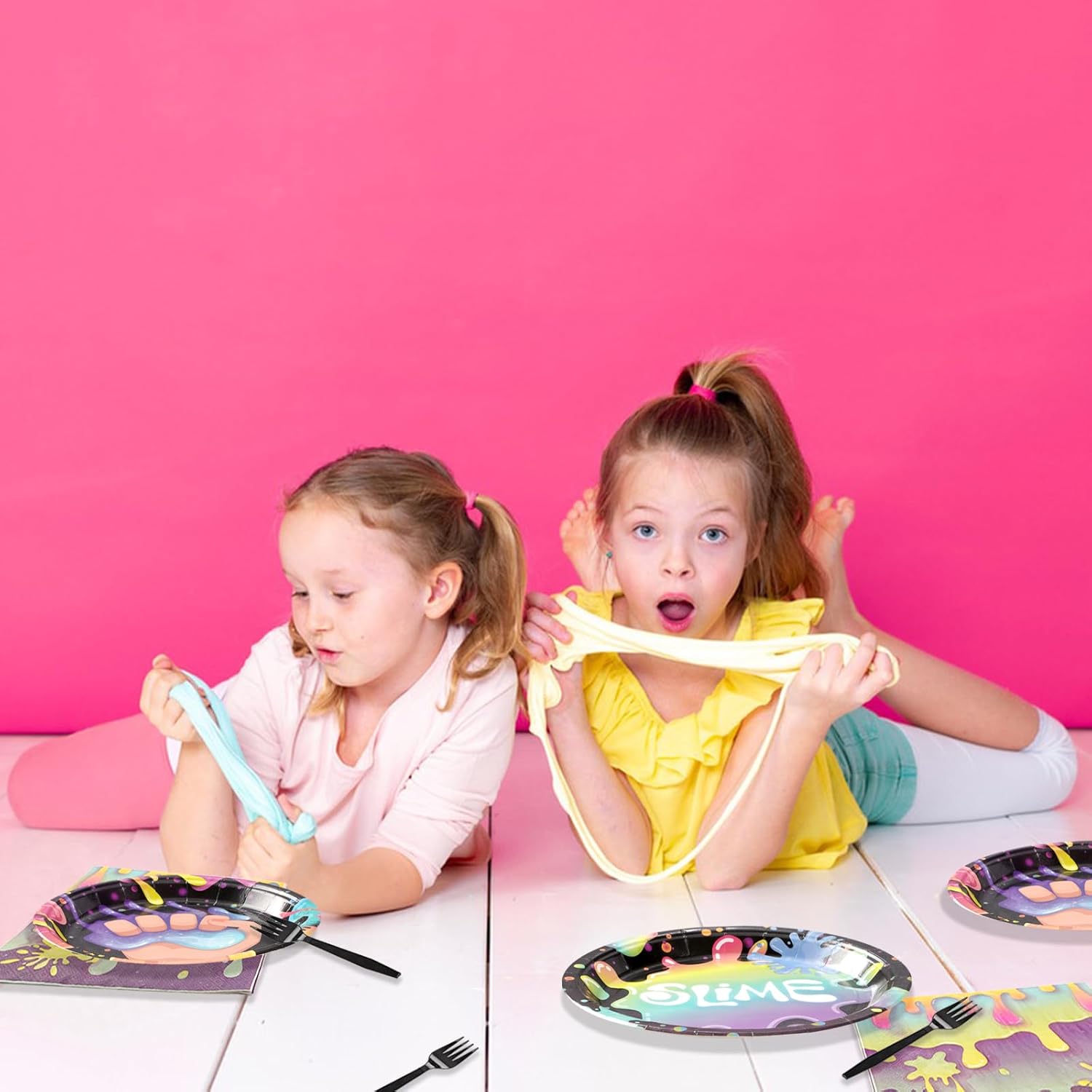 【Versatile and Fun】Slime party supplies are a popular choice for kids’ birthdays and slumber events. These slime making party plates supplies help create a lively and interactive atmosphere for children to unleash their creativity and enjoy a unique party experience.