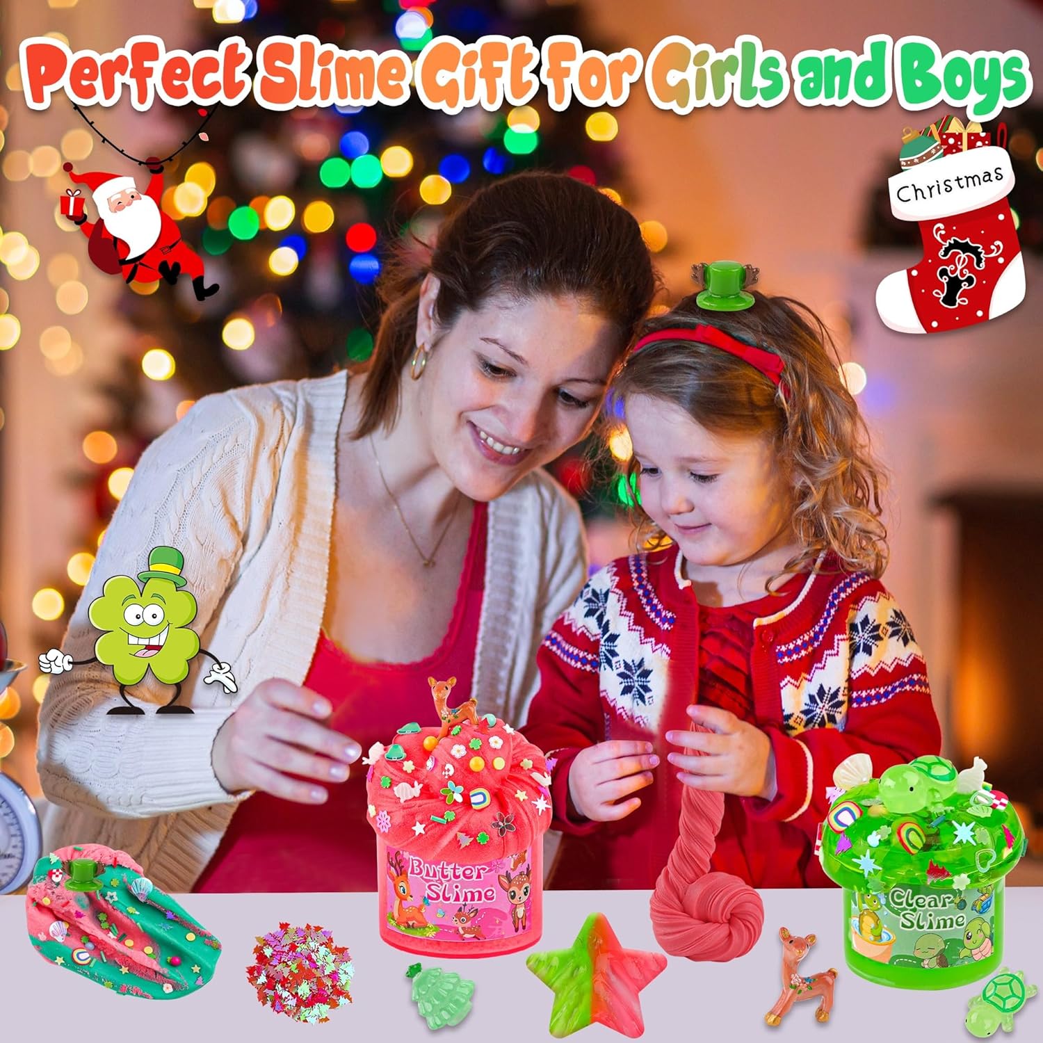 🍂【Non-stick & 100% Safe】Our Christmas slime kit for girls and boys is made of high quality raw materials, non-stick, safe for adults and children, but please do not eat it! Please note that children under the age of 3 years old under the supervision of use. Our sets are perfect for Christmas party favors for kids or kids stocking stuffers!