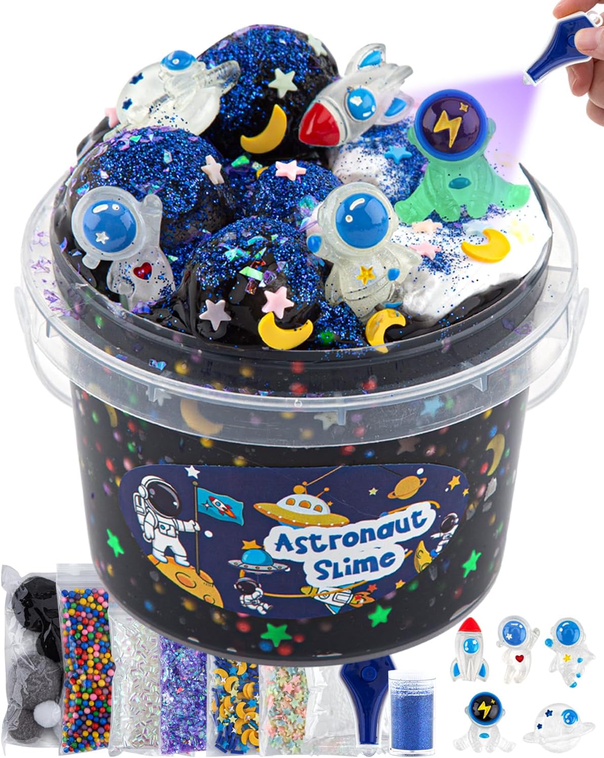 Astronaut Galaxy Slime for Kids, Big Slime Bucket with Slime Clay, Glow in The Dark Slime Kit for Girls & Boys Ages 8-12, Slime Party Favors Birthday Easter Hallowmas Gift