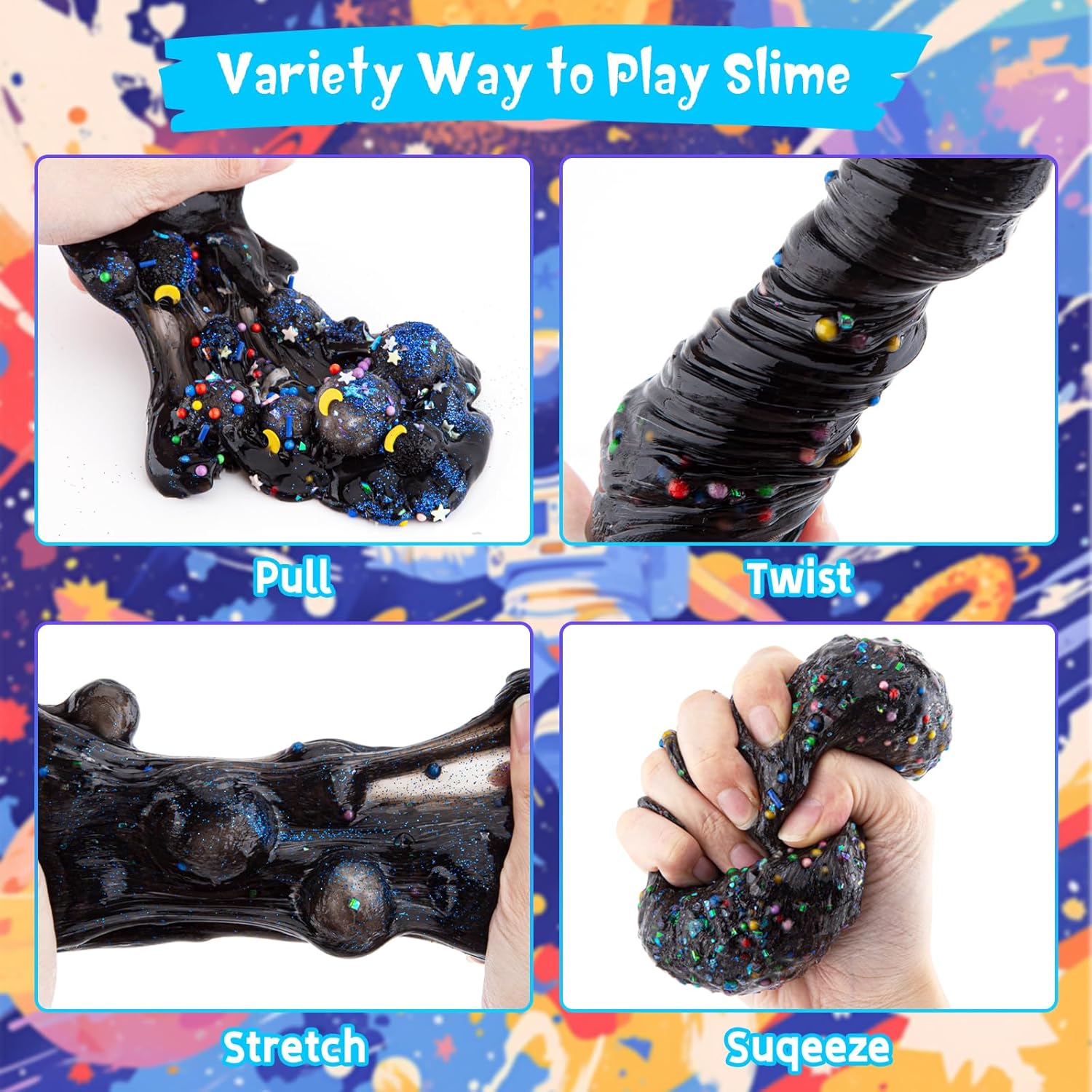 【Kids Friendly Slime】 Made from high-quality ingredients, this black slime is safe for kids and adults alike. Note: Adult supervision is recommended for children under 3 years old. Do NOT eat!