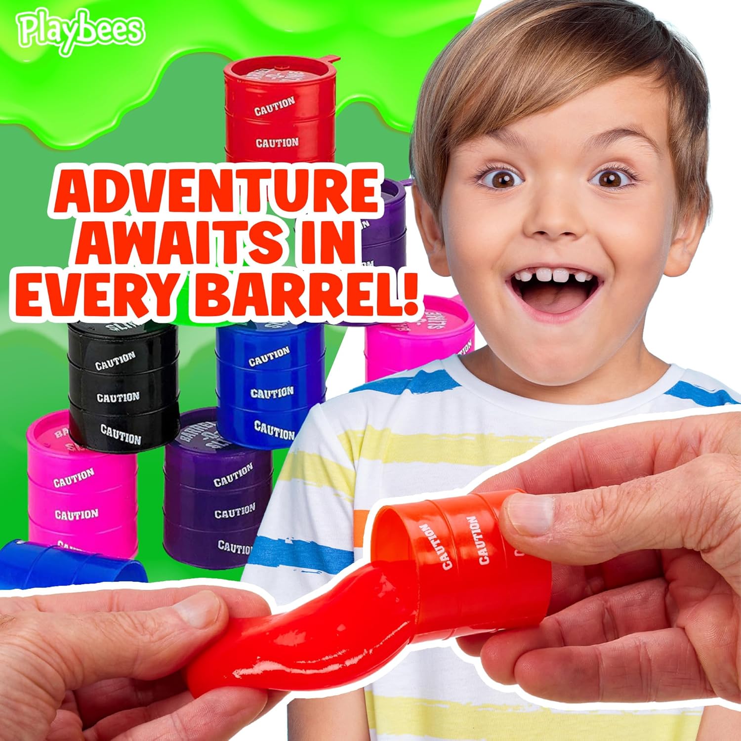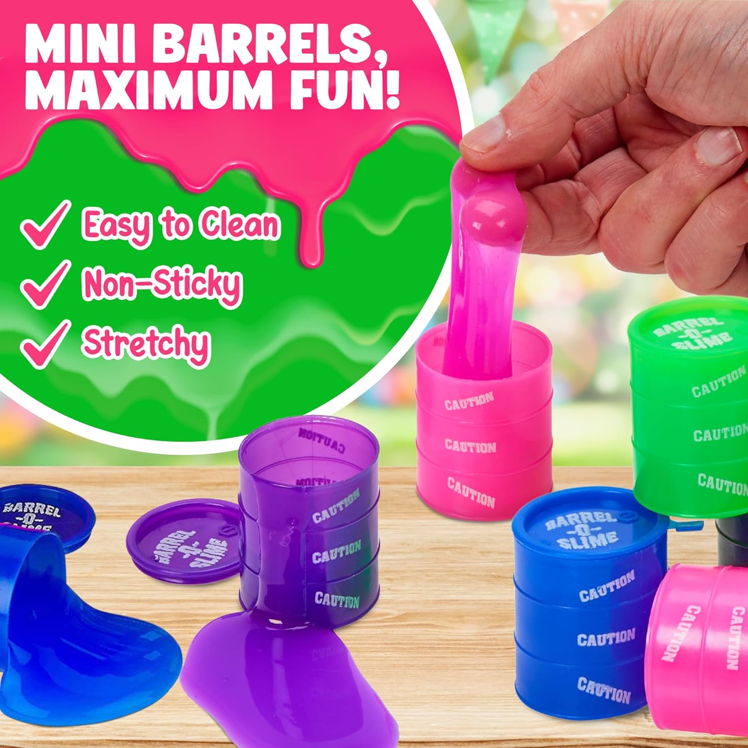 24-Pack of Colorful Slime: Includes 24 mini barrels of vibrant slime bulk perfect for parties, goody bags, or playtime activities. Great for tactile stimulation and imaginative play for kids ages 3 and up.