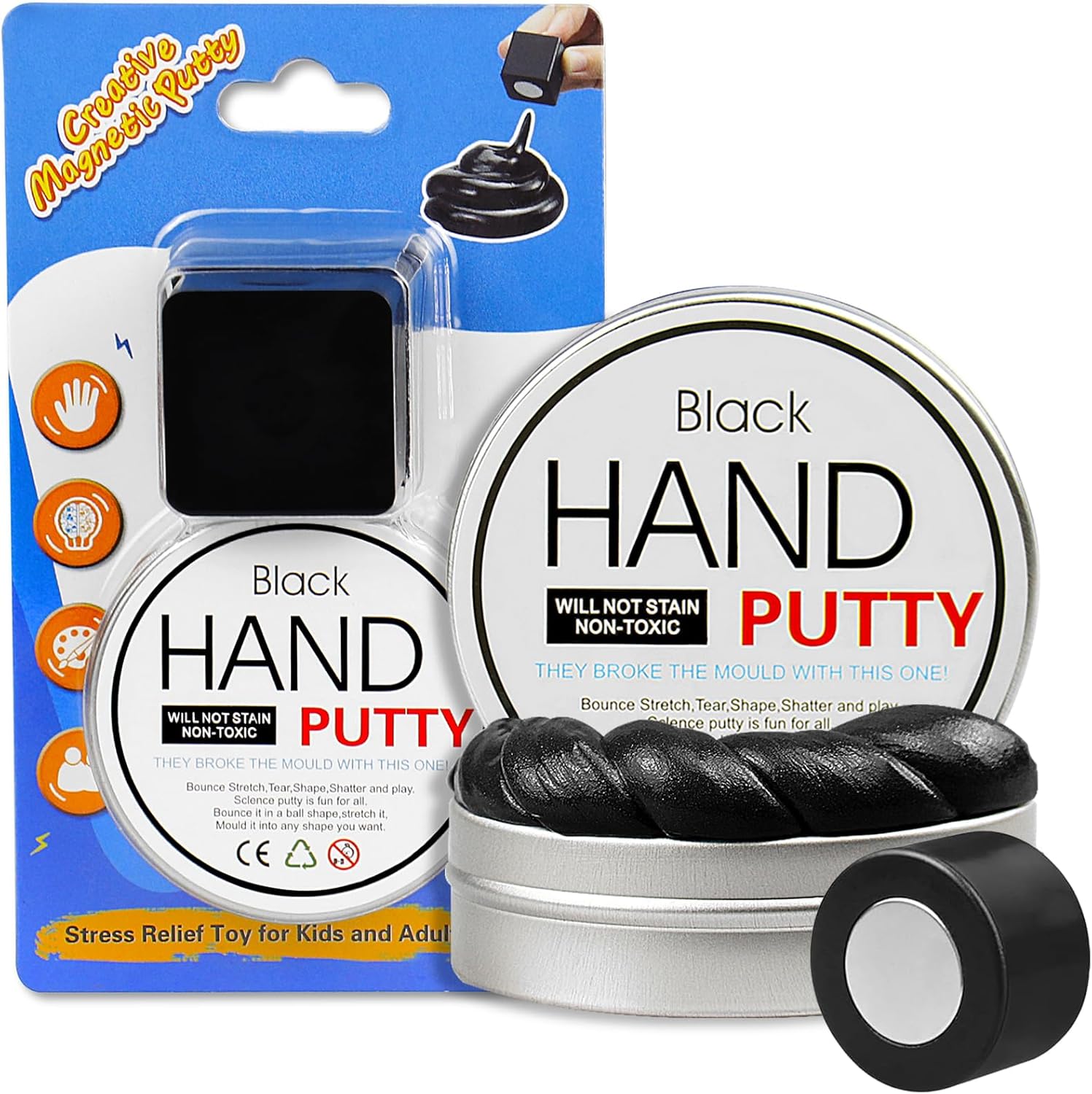 SAFETY MAGNET PUTTY ๐ This good design hand slime black putty is really magnetic, which can be moved freely. It is made of silicon grease material which is non-toxic and has no harmful substances. And it wonโt dry out or crumble over time. Great for DIY. Ideal for developing children’s intelligence.