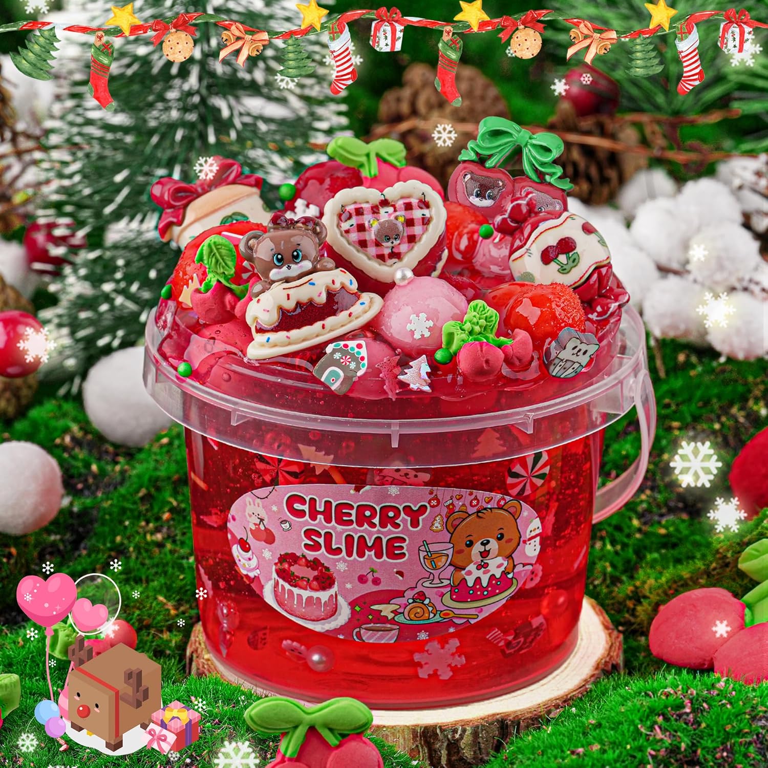 Cherry Red Christmas Slime Kit, Clear Slime Bucket with Slime Clay, 10 Packs of Add-ins, Slime Party Favors for Kids, Birthday Easter Halloween Christmas Slime Girls Gifts & Boys Gifts Sensory Toys