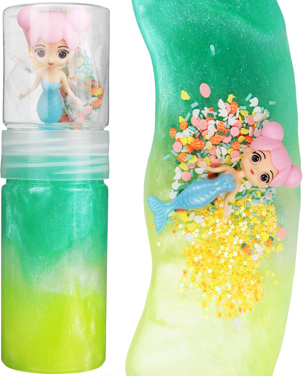 Clear Slime for Kids – Non-Toxic 4-in-1 Set with Galaxy Glitter, Charms & Accessories, Stretchy Non-Sticky Party Favors for Birthday, Yellow&White&Green