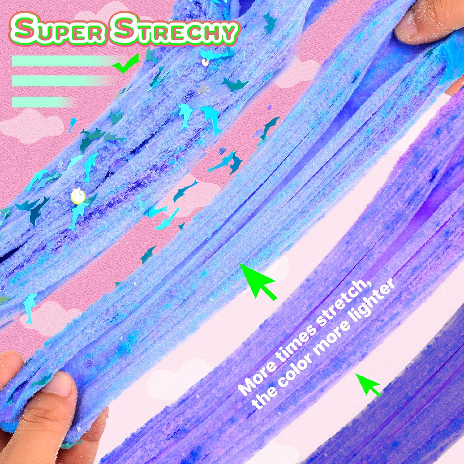 Cloud Slime with Stars Moons Glitter Add Ins, Scented Premade Slime for Kids, Stretchy Sludge Non Sticky Putty, Slime Party Favors Stress Relief Toy for Girls Boys Birthday, Blue/Purple 7OZ