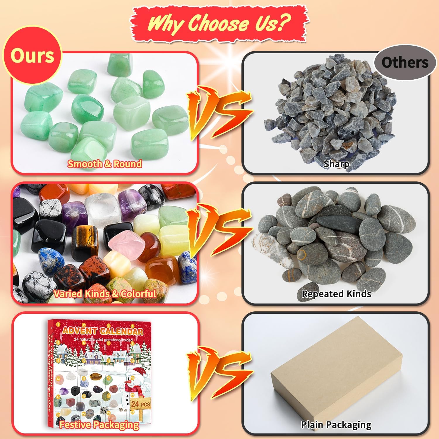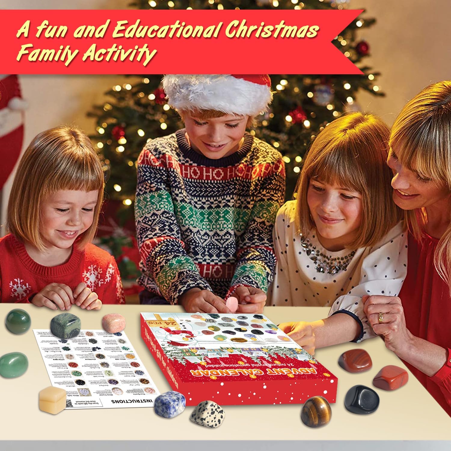 Upgraded Crystals Advent Calendar 2024: 24 Days Christmas Vacation Advent Calendar with natural crystals, stones, and rocks, including Quartz, Jasper, Agate, Jade, and more. Celebrate the holiday season with our gem stone advent calendar.