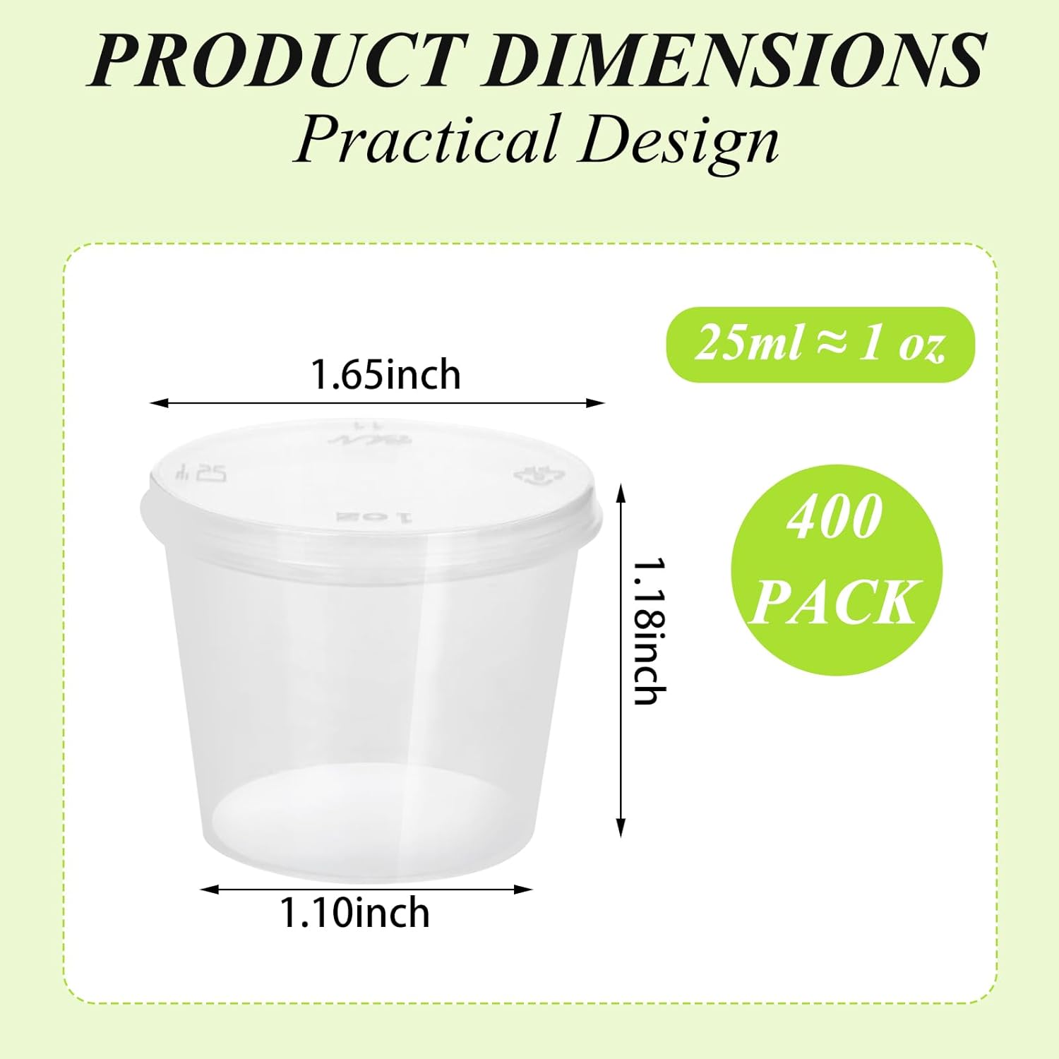 400 Pack Portion Cups : You will get 400PCS 1 oz containers with lids, Enough quantity to meet your daily use needs. The one-piece lid is guaranteed not to be lost, make sure each cup has a lid and is easy to use