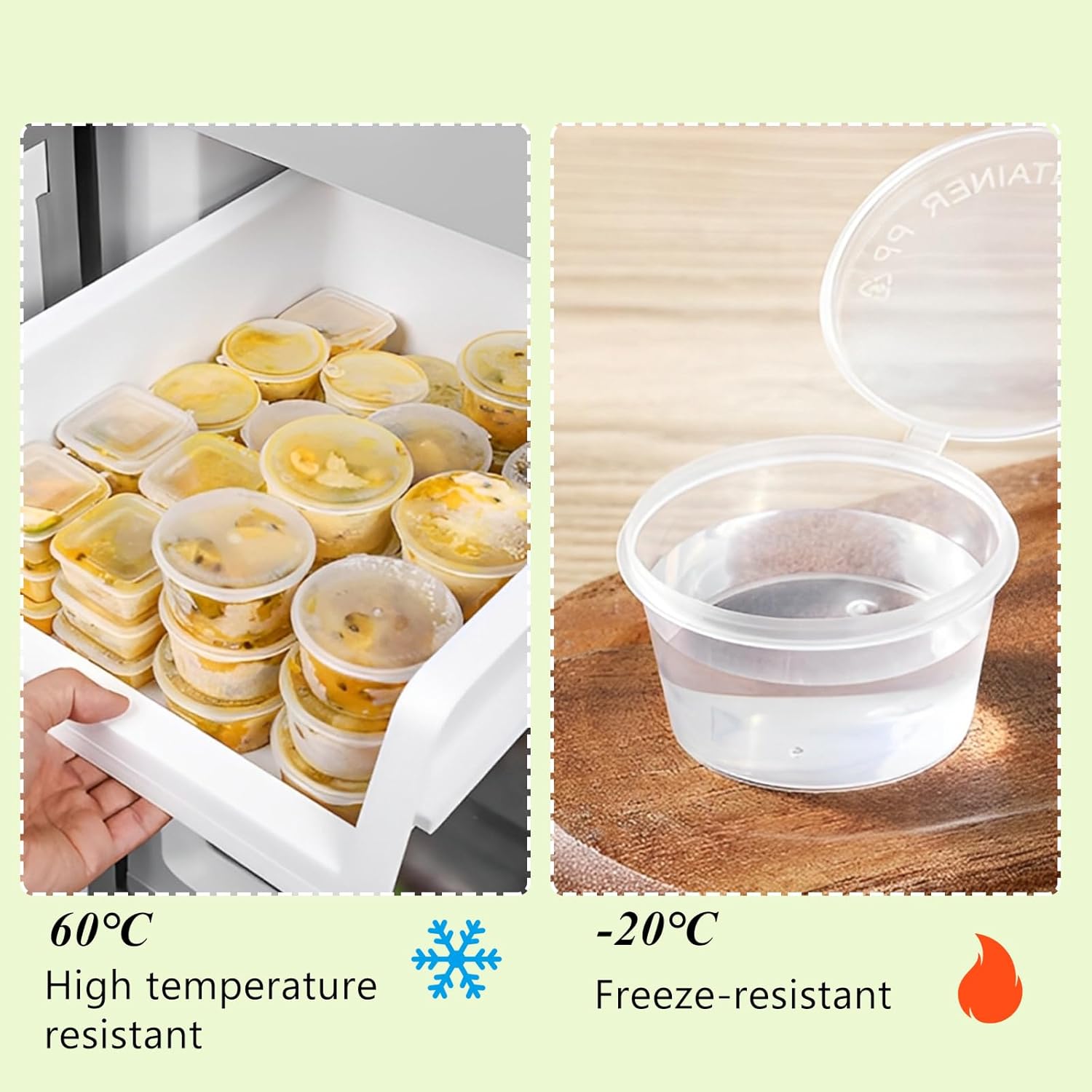 The condiment cups with lids is made of PP material, non-toxic, healthy and safe for you, stackable, washable and reusable.