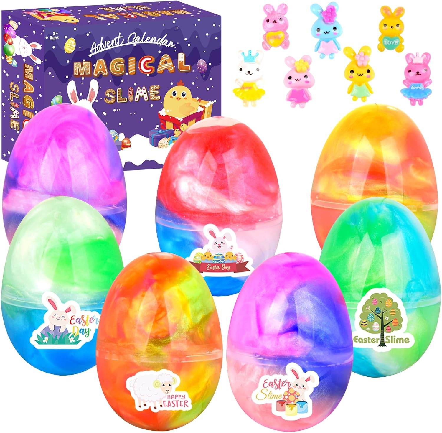 Easter Basket Stuffers – This slime kit contains 7 easter egg fillers, each filled with slime and comes with 7 bunny accessories for added fun, sensory toys gifts for classroom rewards teens kids girls boys 4 5 6 7 8 9 10 11 12 year Old.