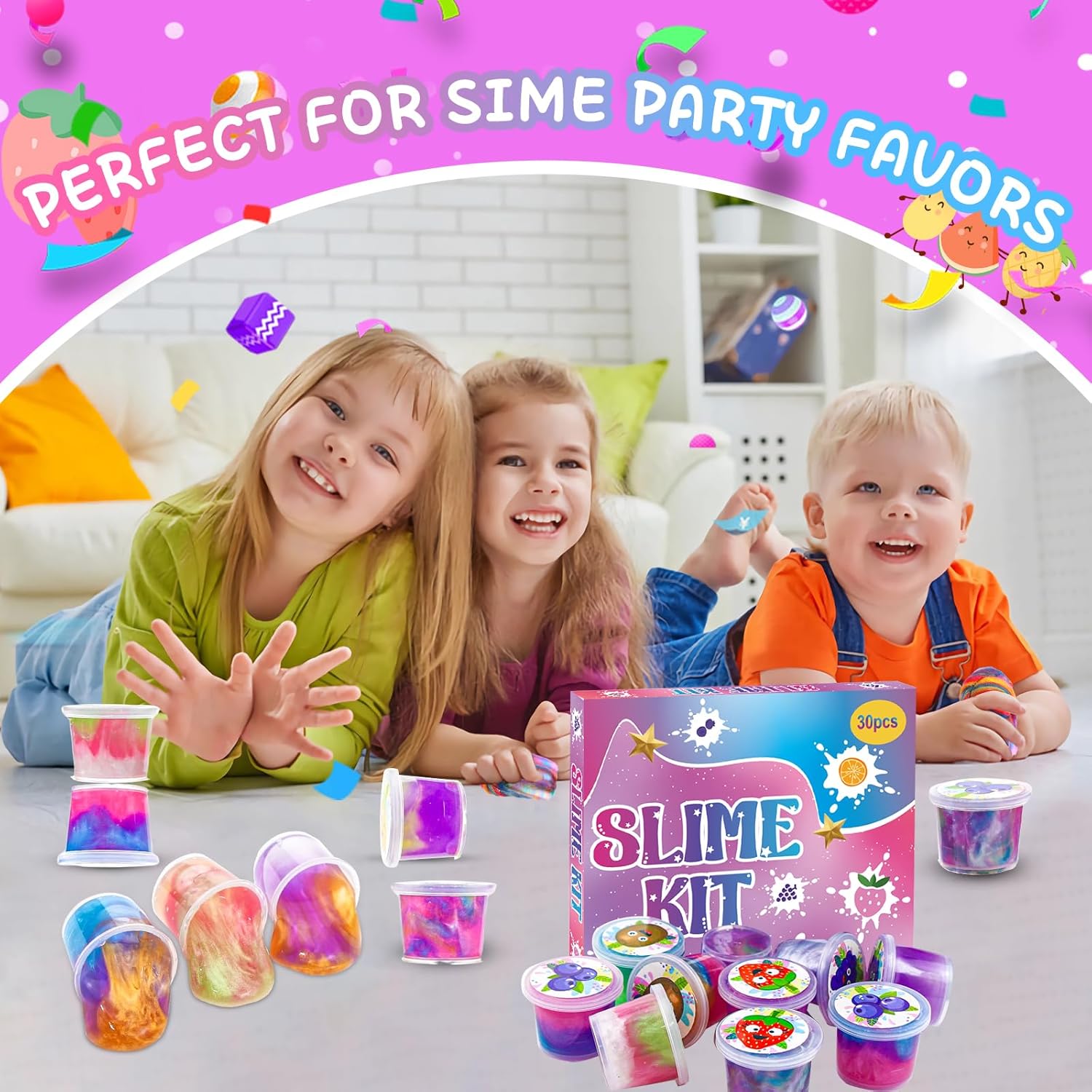 This Fruits slime making kit packed in fashion bright color box for easy storage