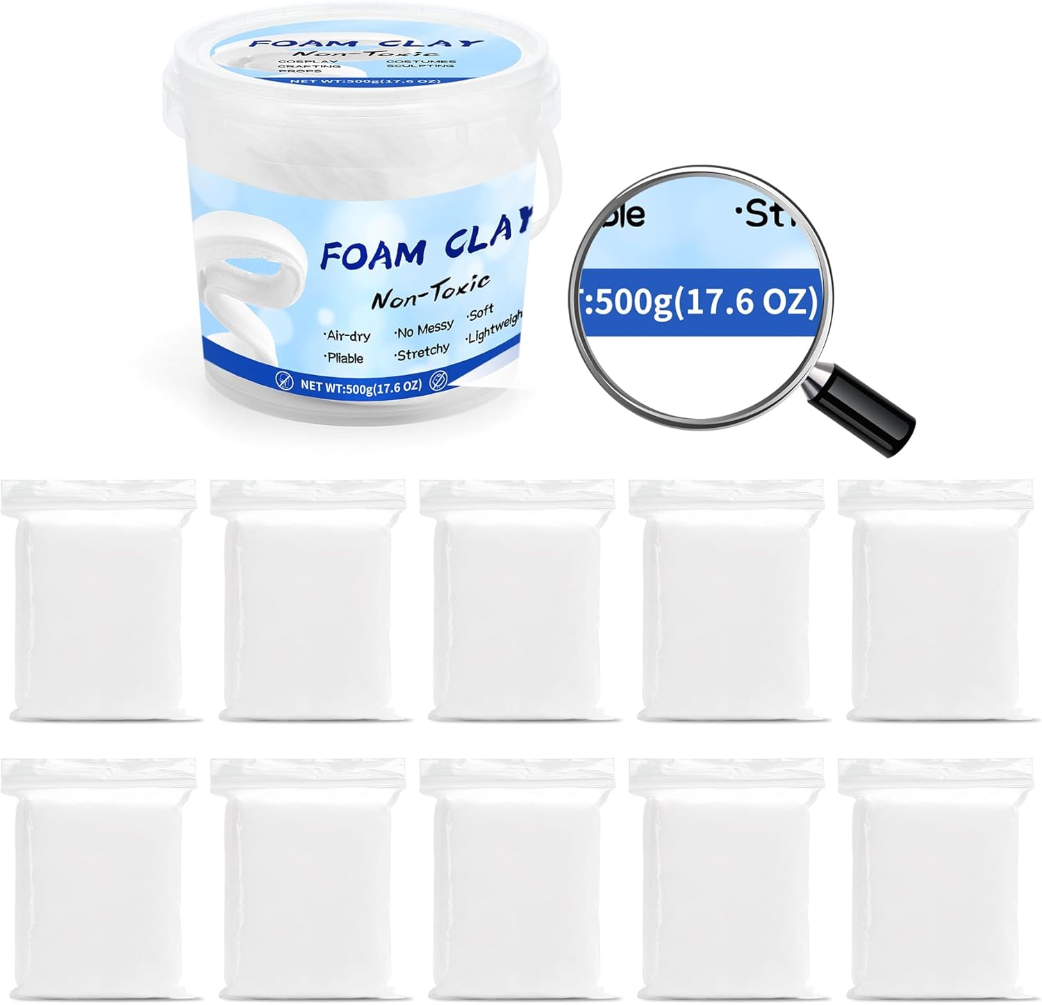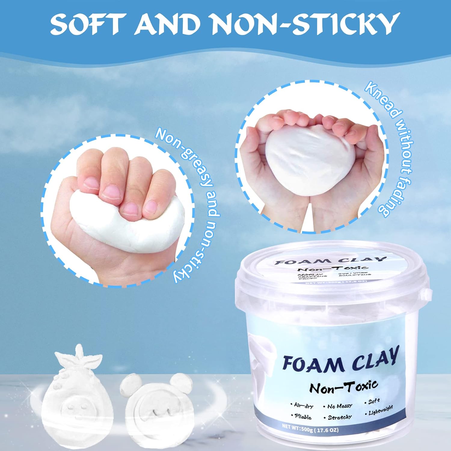 Foam Soft Clay for Slime, 500G(17.6OZ) Lightweight Moldable Air Dry Clay Suitable for DIY Creative Art Design/Creative Crafts Sanding or Shaping with Sculpting Tools,White