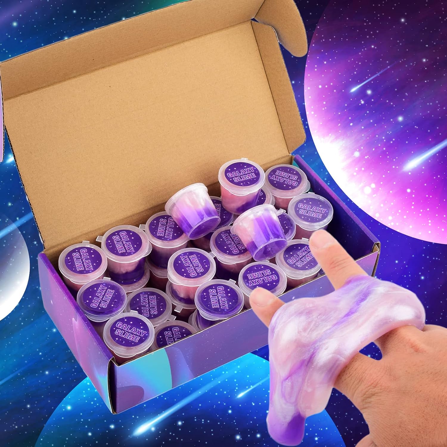 👑 Discover the Galaxy Slime Kit – a unique 24 pack of mini galaxy slime with exquisite gift box packaging that allows children to share love and fun with friends and family. Say goodbye to ordinary slime with this out-of-this-world kit.