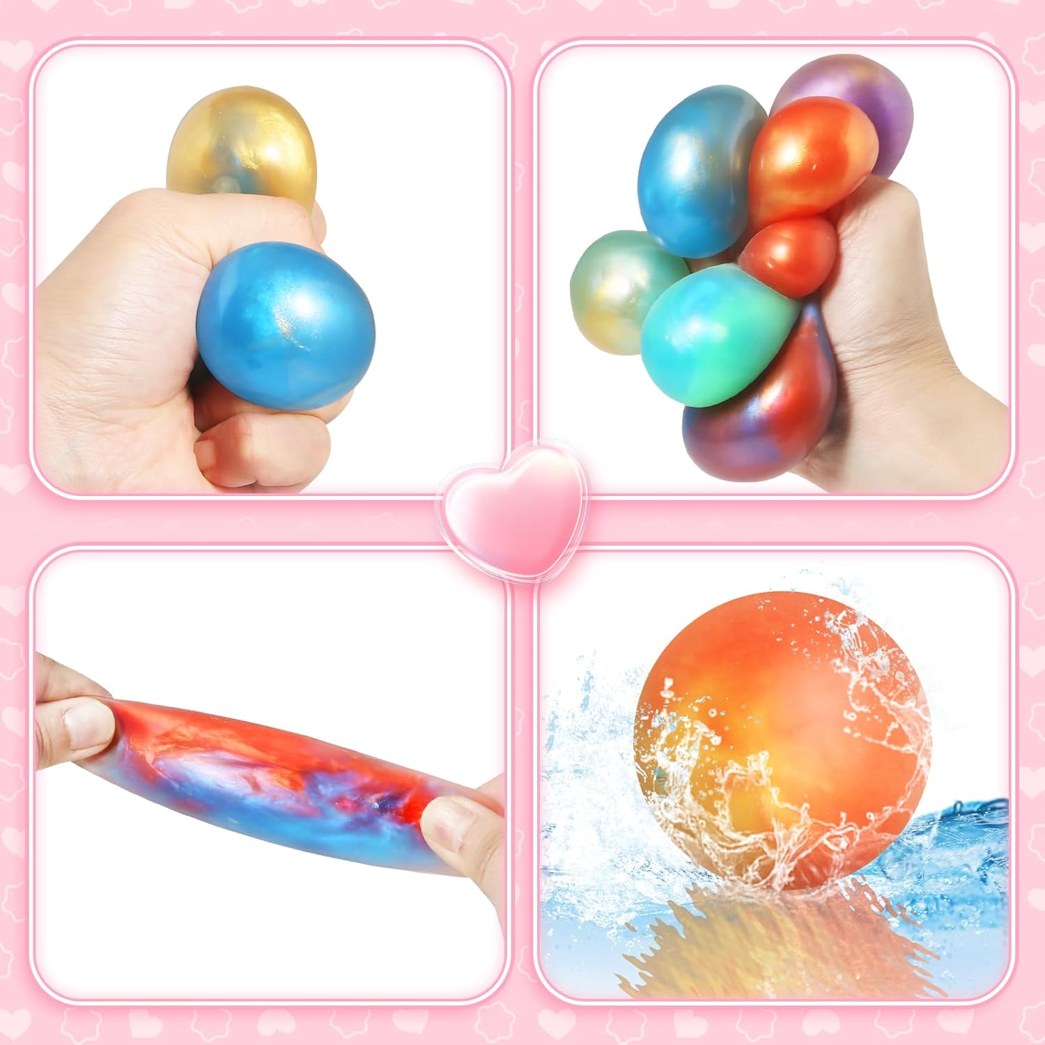 Safety Measure:This slime Squeeze ball set is safe and non-toxic,and abides by US toys standards. It’s soft and comfortable to touch,durable and reusable,and keep kids entertained for hours. And not only portable, inexpensive and relatively mess free,very safe from kids skin ,do not eat,recommend for kids 3 years up.