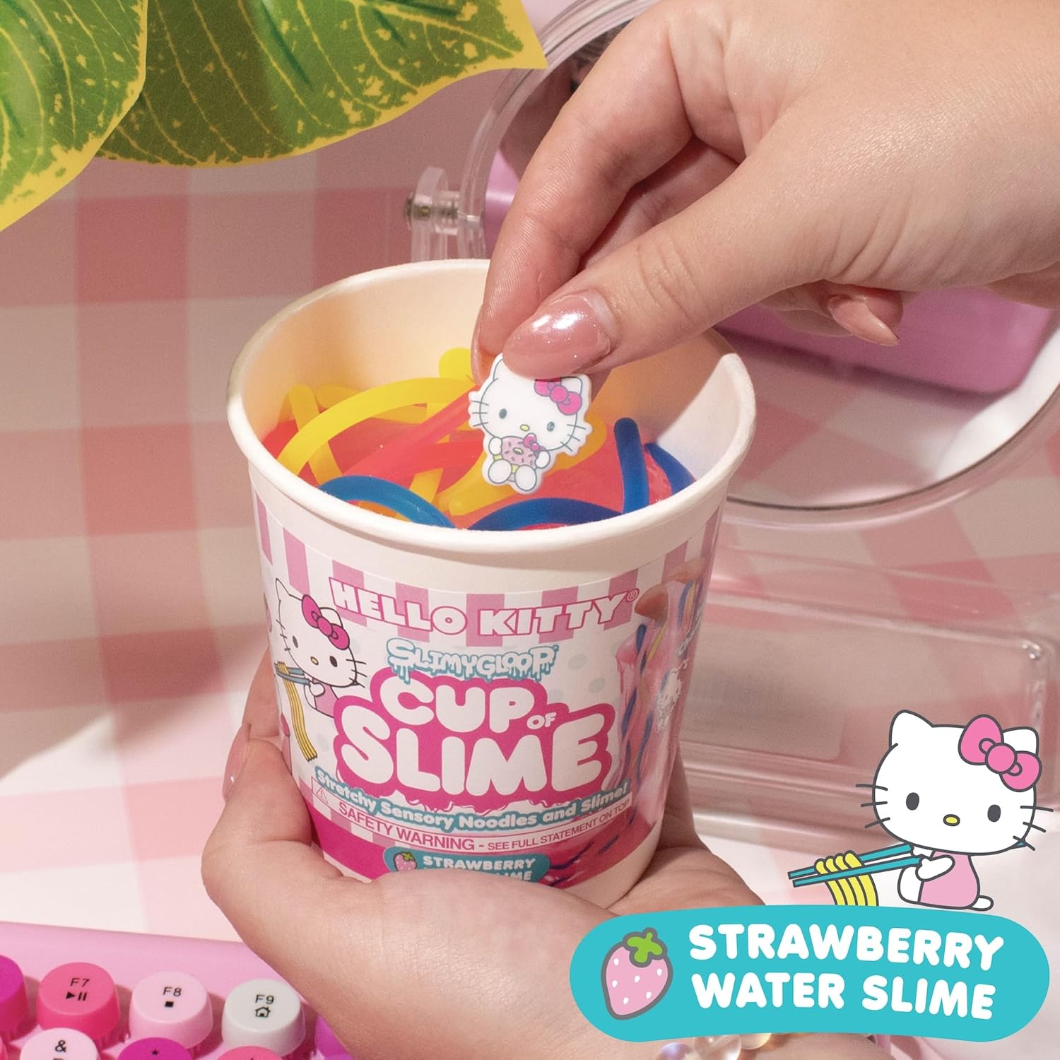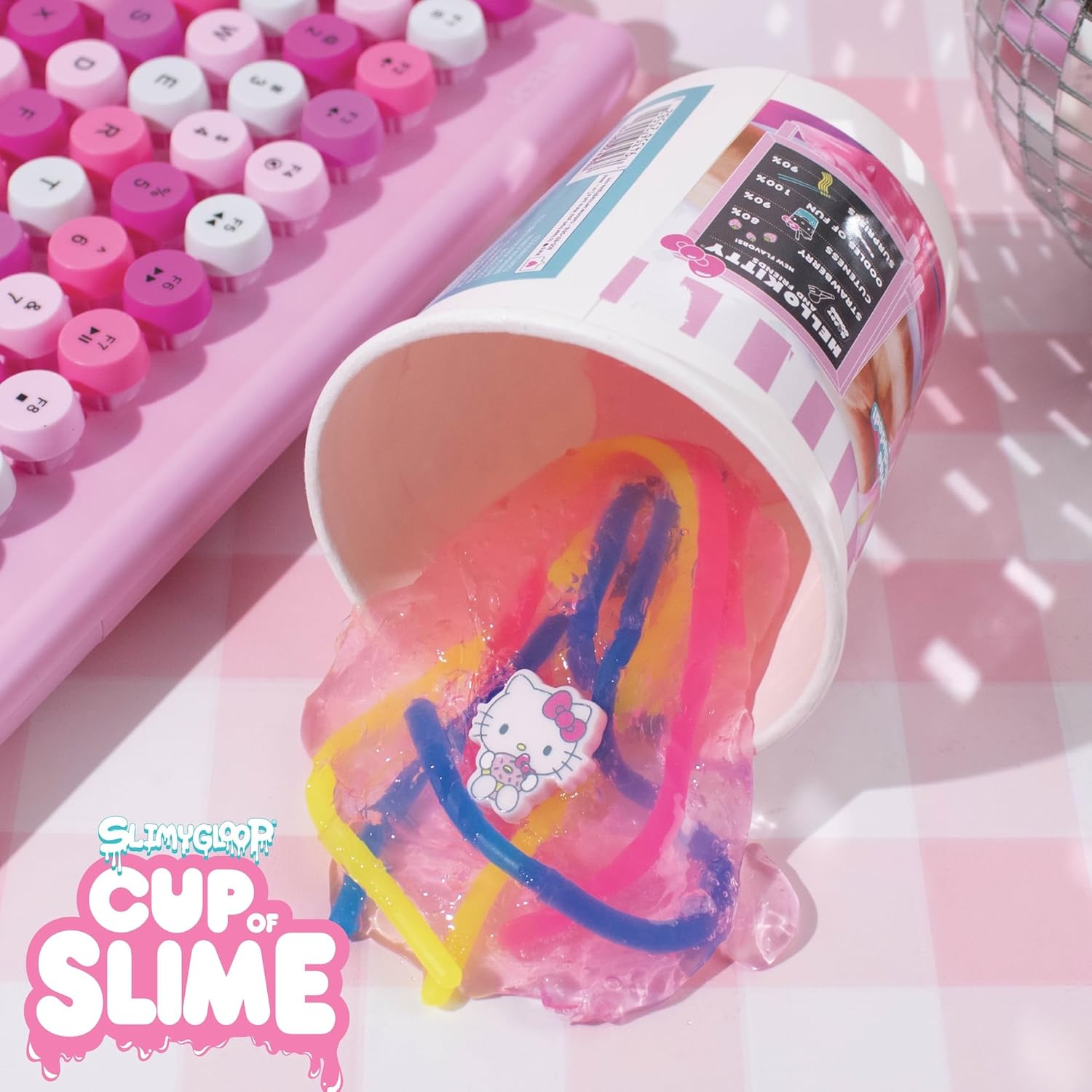 Hello Kitty SLIMYGLOOP Cup of Slime, 4.8 oz. Strawberry Pink Slime with Stretchy Noodles, Noodle Cup, Hello Kitty Charm, Sanrio Stuff, Slime for Kids, Kawaii Stuff, Slime Kit, Sanrio Slimes
