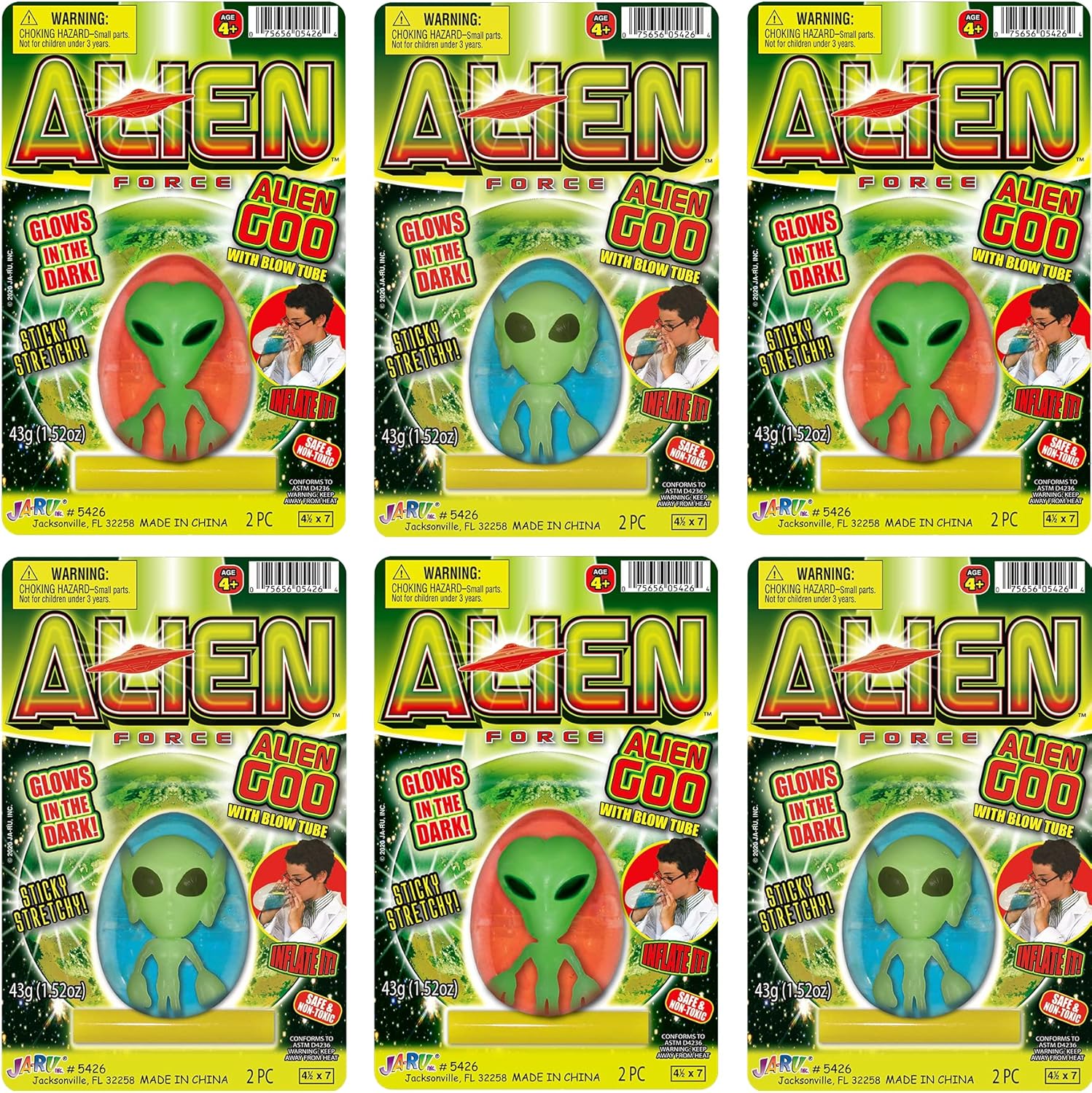 JA-RU Inflatable Glow in The Dark Slime for Kids with Alien Figure (6 Alien Egg Slime) Slime Kit for Boys and Girls. Sensory Stress Relief Toys. Bulk Mini Slime Party Favors. 5426-6s