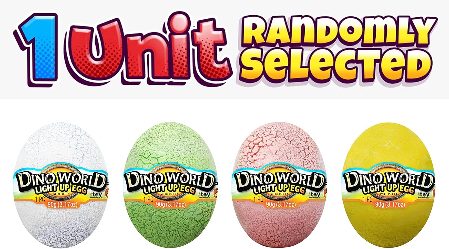 1 Pack of Dino World Light Up Egg Slime – Each dino egg contains a scented slime and one surprise dinosaur toy inside. Comes in assorted color and dinosaur style. Plus 1 FunaTon sticker.