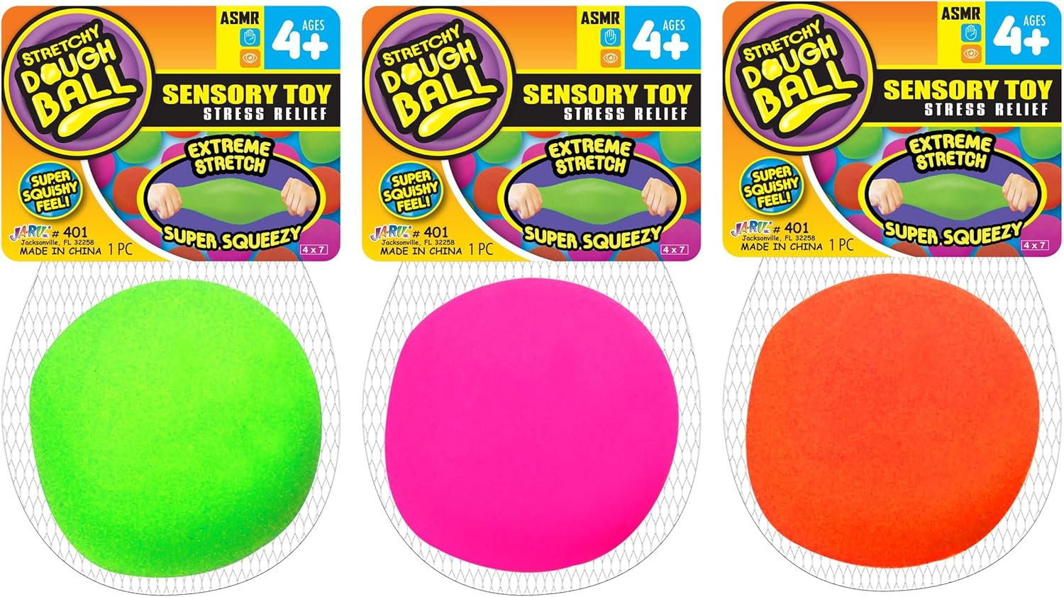 JA-RU Stretchy Ball (Pack of 3) The Original Dough Ball Fidget Toy Pack Stretchy Squishy Toys Bouncy Ball Set for Kids and Adults Soft Bounce Stress Ball Therapy Ball Doh Pull and Stretch 401-3C