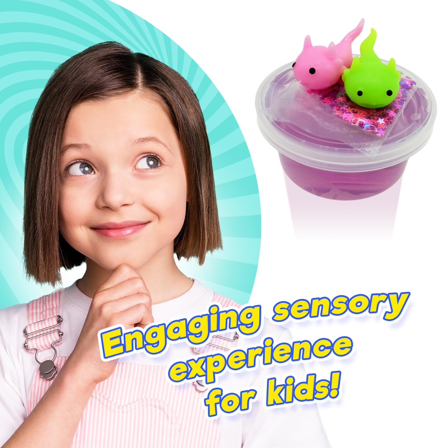 Fun Axolotl Slime Kit – Mix in the 2 mini axolotl toys & star confetti in the gel-like putty to make a colorful sensory toy. These axolotl toys for boys & girls offers a satisfying tactile experience.