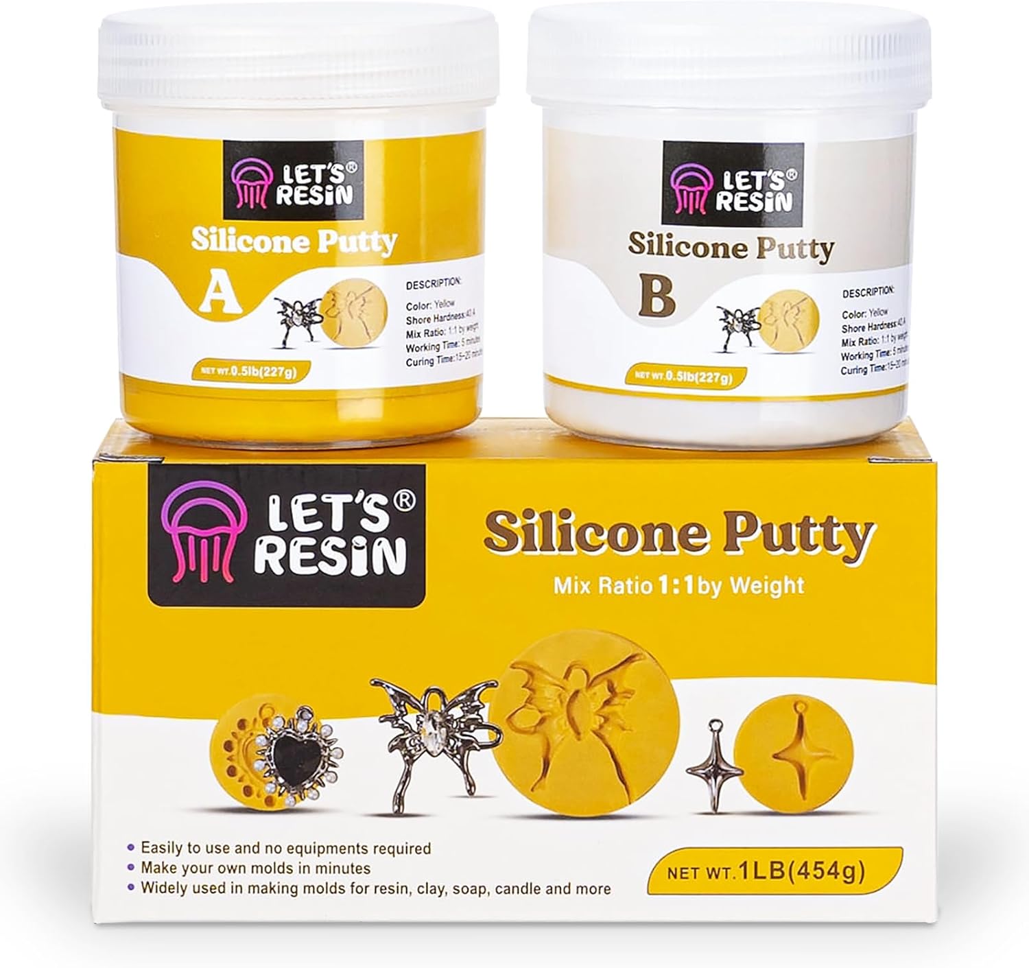 LET’S RESIN Silicone Putty,1LB/40A Silicone Mold Making Kit for Resin Molds, Non-Toxic, 1:1 Ratio Mixing, Art Casting for Making Jewelry/Resin Craft, Easy to Use(Yellow)