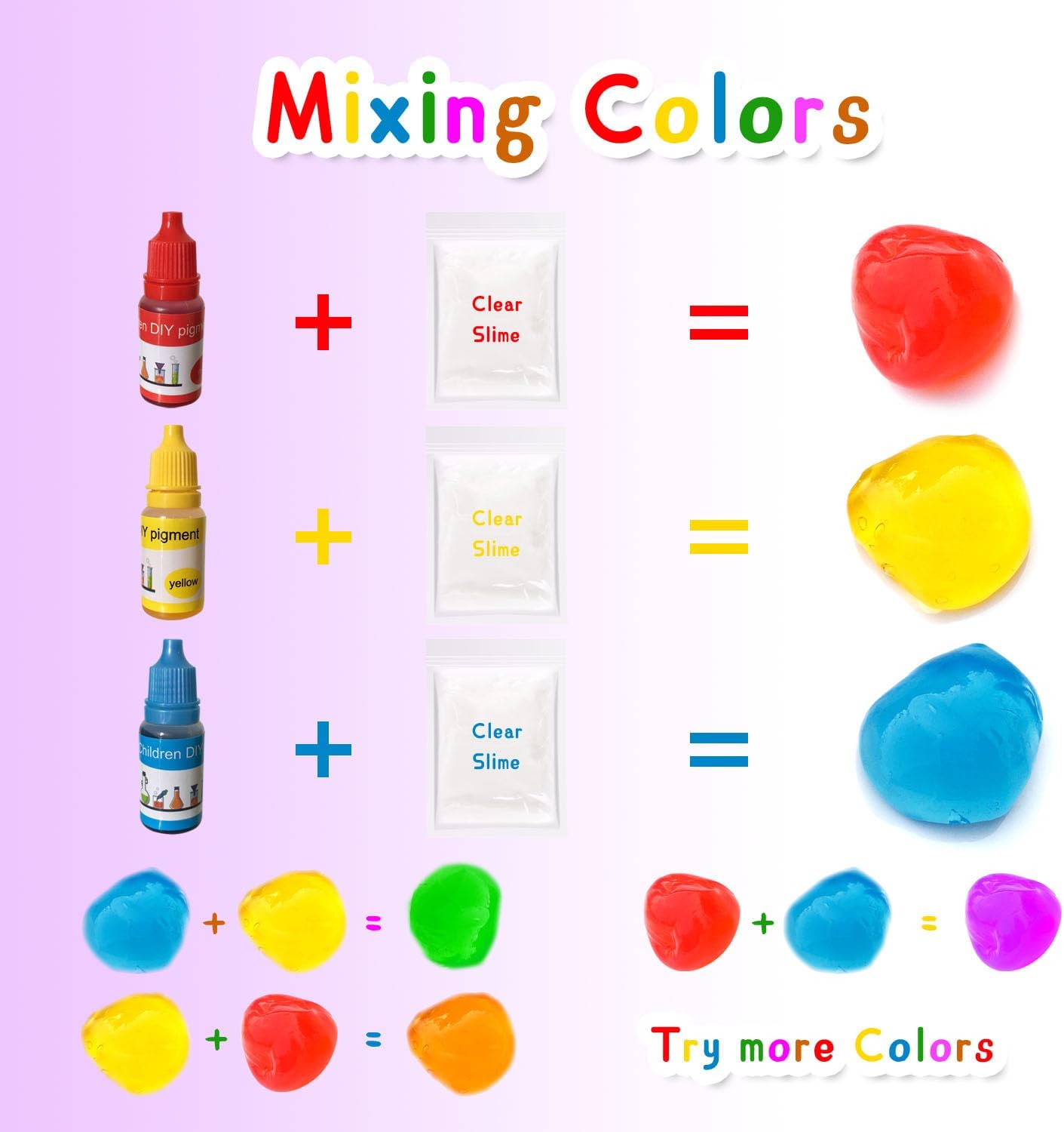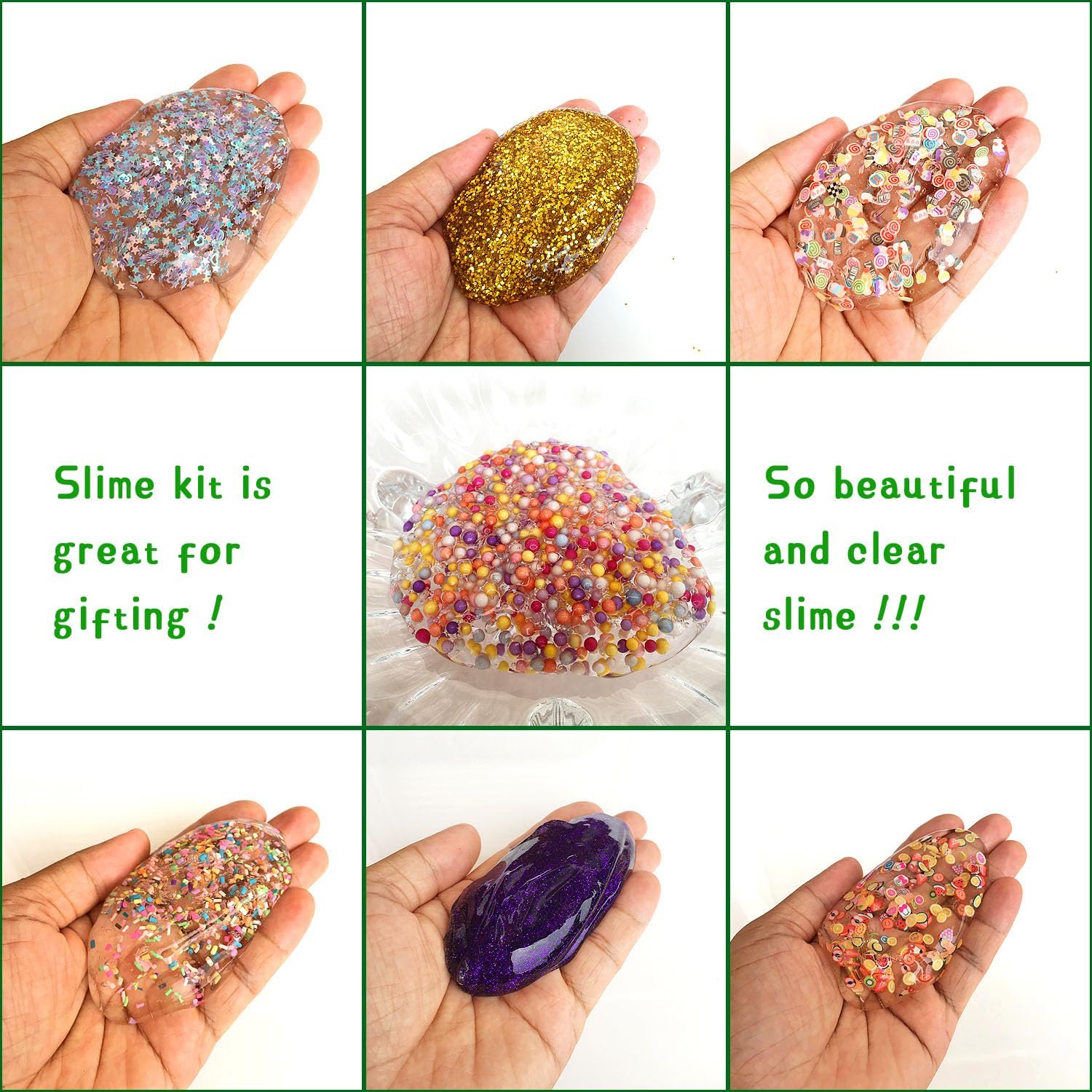 Easy To Make – Mix the child’s favorite accessories with clear slime putty, kids can create many different and beautiful slimes : foam slime, glitter slime, crystal slime, fruit slime, cloud slime, ice slime, cake slime, flower slime and love slime!