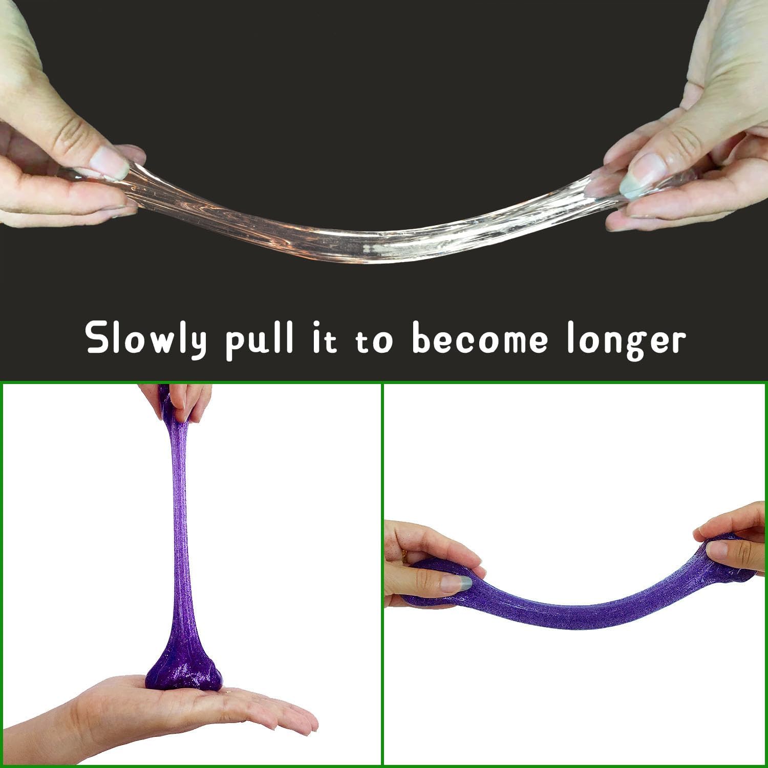 Safe and Non Toxic – Clear Slime Kit is made by eco-friendly materials for children, The slime putty is not stick to hand but stretchy. Our slime is super clear like water,because it is made with upgraded materials, ASTM Certified.