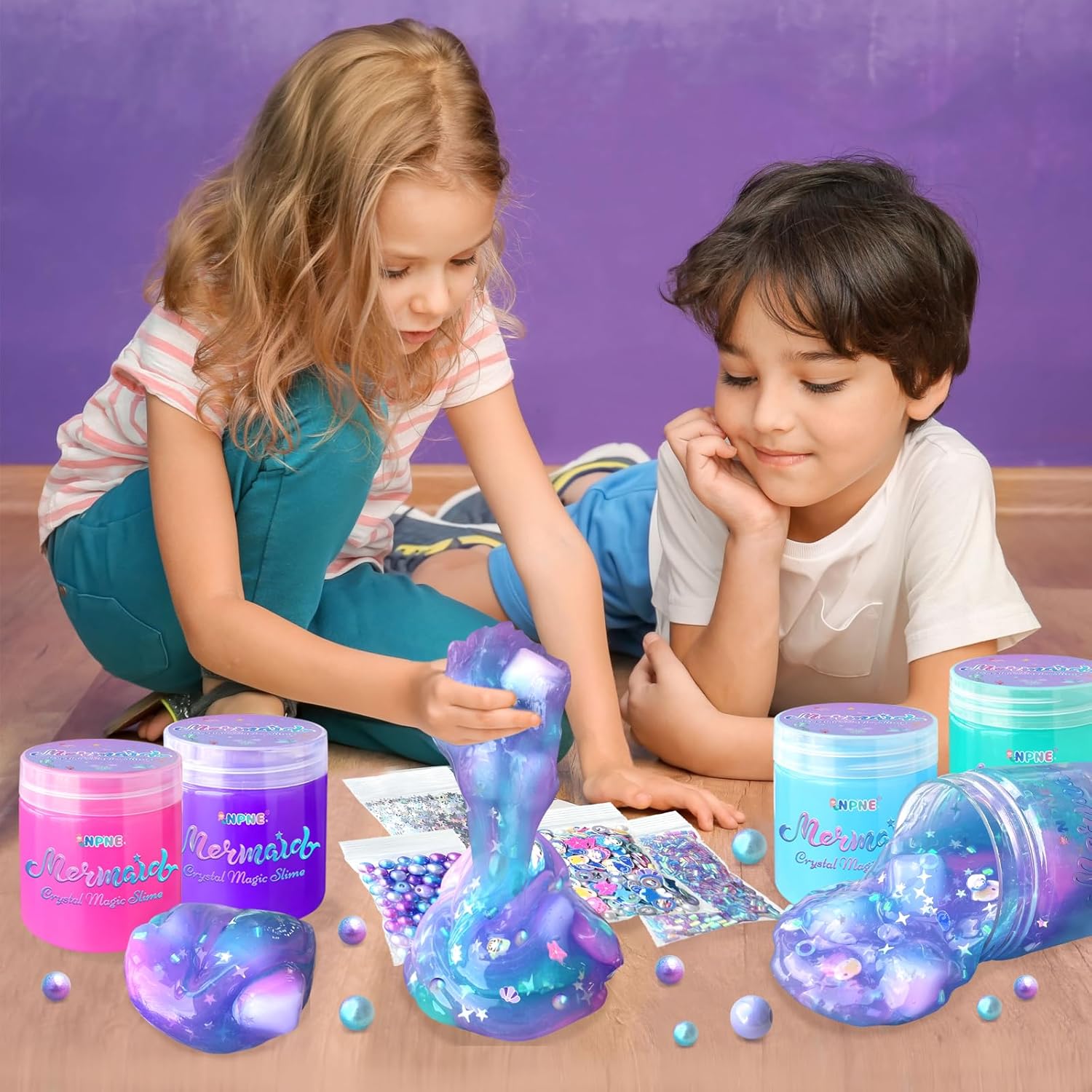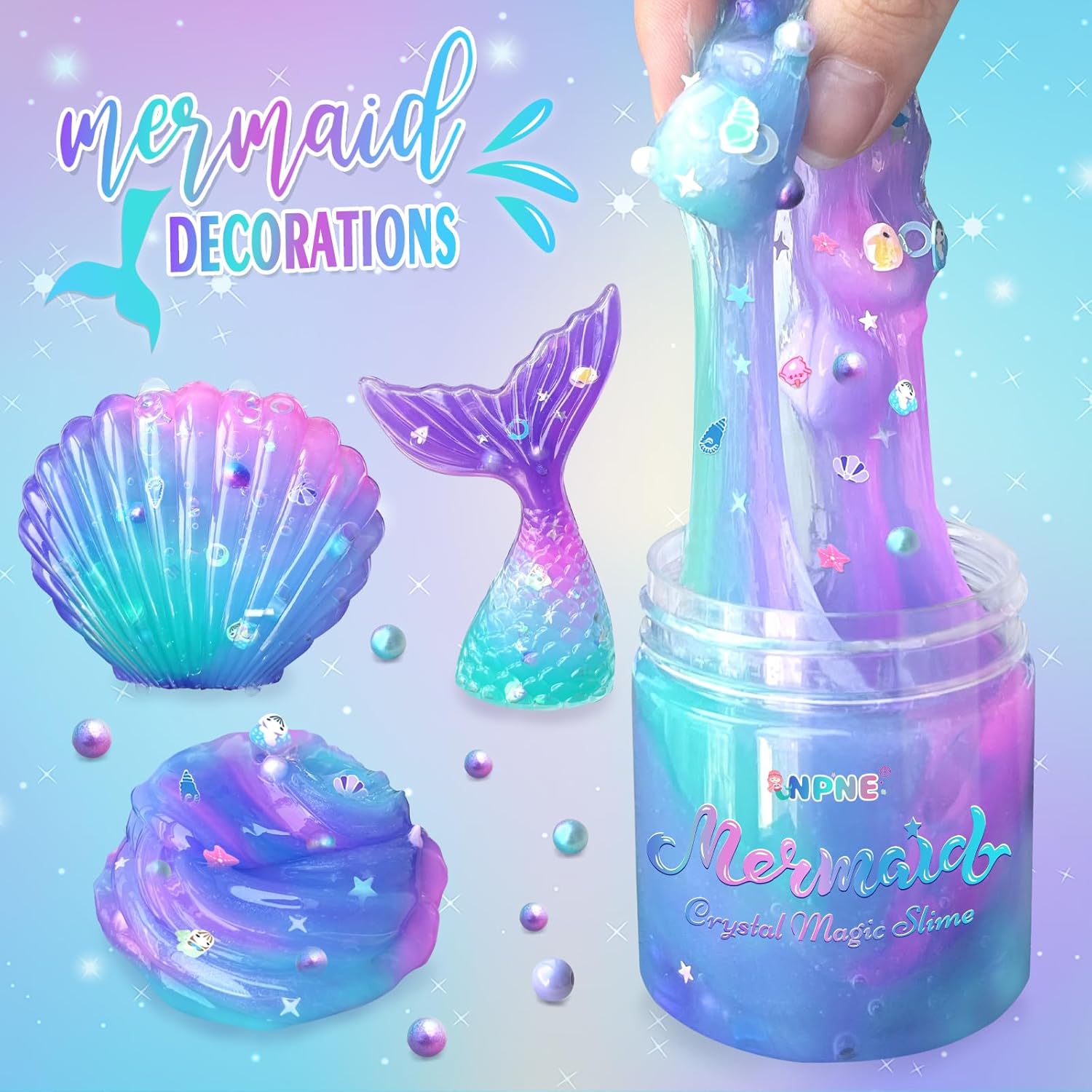 Mermaid Slime Kit for Girls DIY Slime Making Kit with Glitter Add Ins Foam Jelly Cubes Christmas Birthday Party Favors Present Crafts Stress Relief Toys for Kids Age 8-12