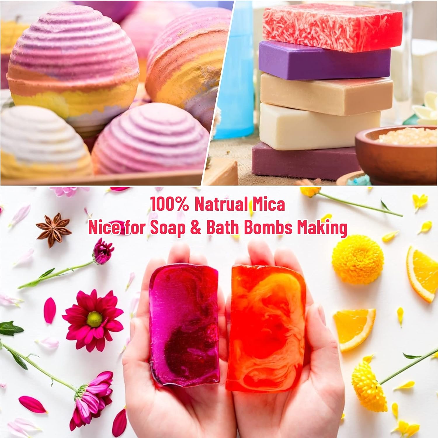 𝐂𝐨𝐬𝐦𝐞𝐭𝐢𝐜 𝐆𝐫𝐚𝐝𝐞 𝐌𝐢𝐜𝐚 𝐏𝐨𝐰𝐝𝐞𝐫 𝐊𝐢𝐭 Our mica powder pigments are created with cosmetic grade ingredients which are irritation free, stain free, vegan, skin friendly. Perfect dying for soap making, lip gloss pigment, bath bomb colorant making, slime coloring, nails polish decoration, bath salts, shower steamers, body scrubs, body butter, etc. They are nice gifts for making creative cosmetic makeup for daily or festival like eye shadows which are gentle to the skin.