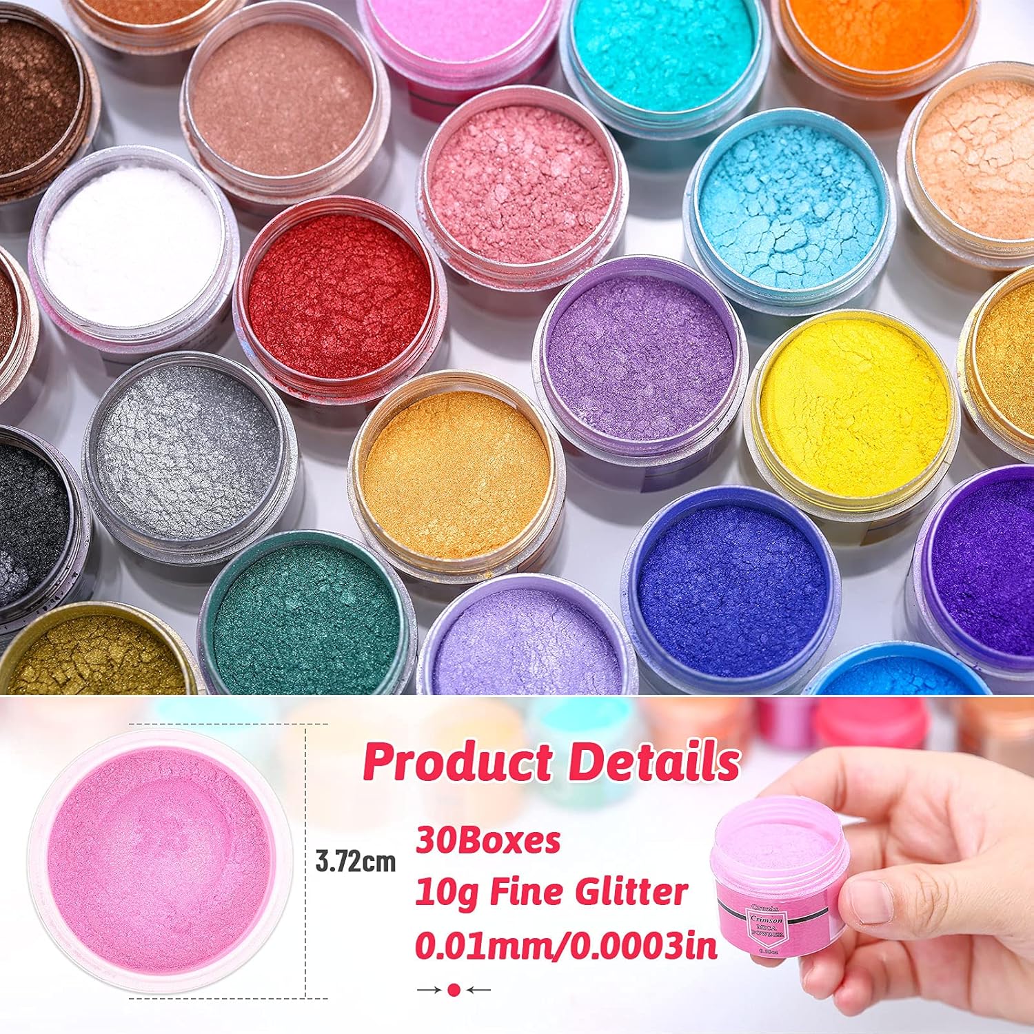 𝐄𝐱𝐭𝐫𝐚 𝐒𝐩𝐨𝐨𝐧𝐬 𝐟𝐨𝐫 𝐁𝐨𝐧𝐮𝐬 𝐚𝐧𝐝 𝐍𝐢𝐜𝐞 𝐏𝐚𝐜𝐤𝐚𝐠𝐞 𝐟𝐨𝐫 𝐆𝐢𝐟𝐭𝐬 Come with 10 pcs spoon, easy to use in a brilliant array of colors, make your creation art crafts more convenient. Each color of the powder is packaged by jars, you can take them out or storage them conveniently. Color Shift Mica Powder are 100% safety and easy to wash. ⚠ Notice: Because the space of the bottle is too large, it may not be fully filled with powder, but the weight of each color in jar is guaranteed to be 10g (0.35oz).