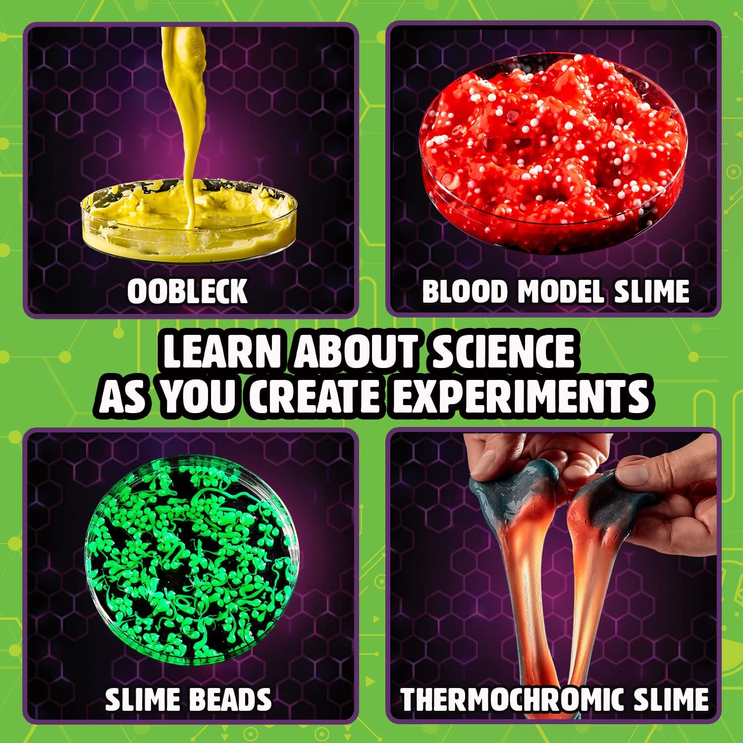 Learn 10 experiments for kids 4-6 like how to make blood models & flubber with slime kit for nieces, sons, daughter, and sisters alike