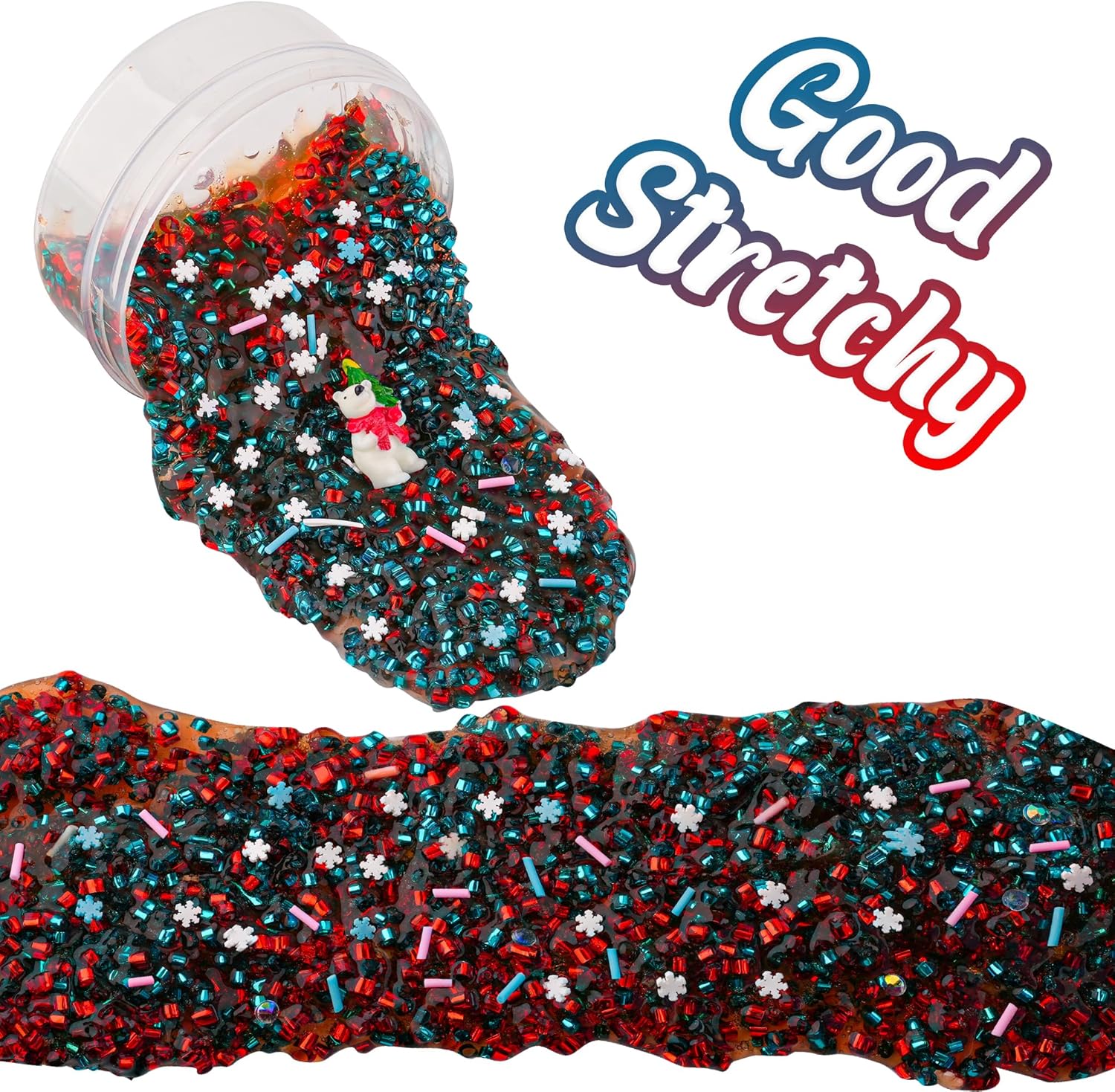 Polar Bear Blue & Red Bingsu Slime, Non-Sticky Glimmer Crunchy Slime, Slime Party Favors for Kids, Sensory Toys Girls Gifts & Boys Gifts Birthday Easter Hallowmas Christmas Slime