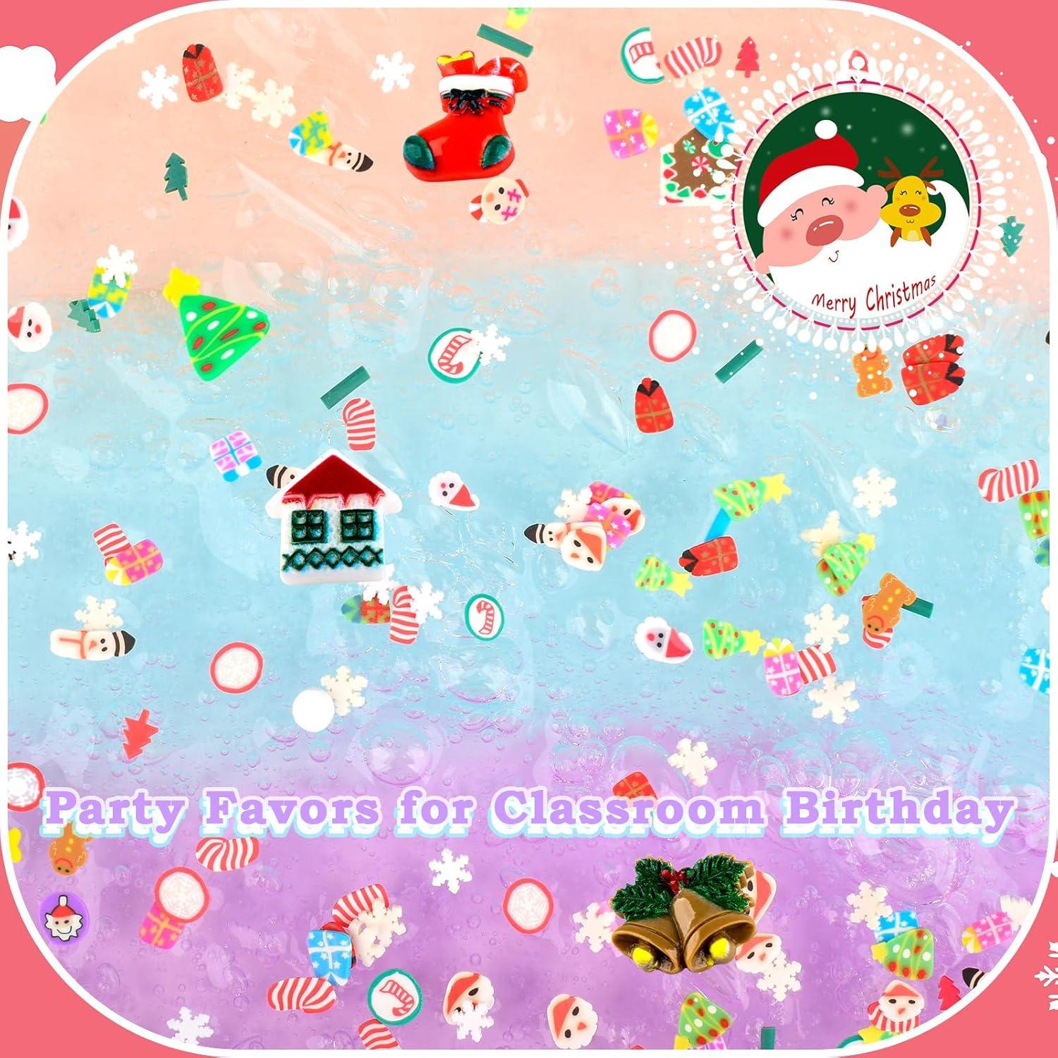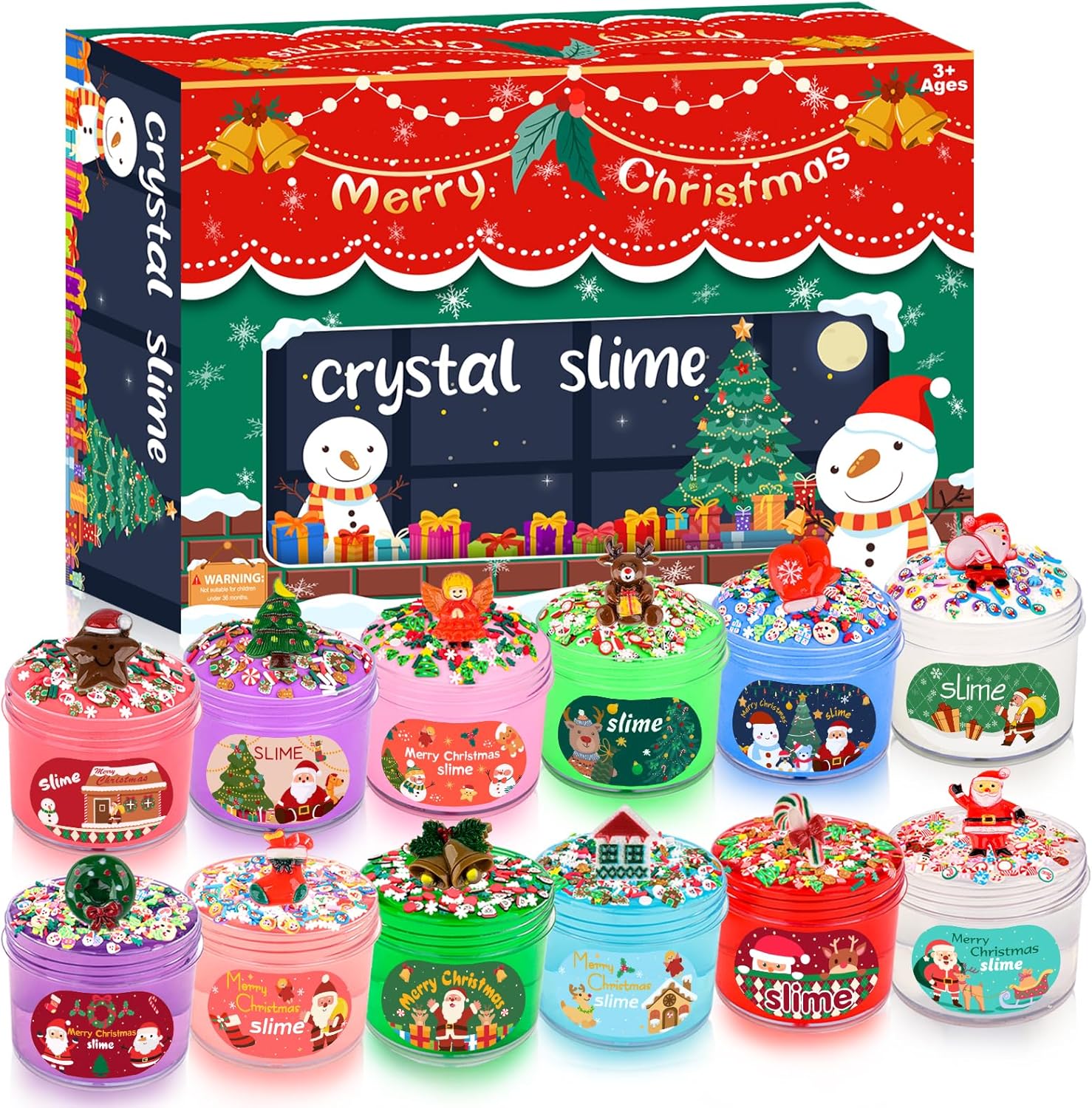 Christmas slime: contains 12 different kinds of slime, 6 cans of butter slime and 6 cans of crystal slime, and 12 kinds of cute slime accessories, slime supplies are abundant, convenient for children to play