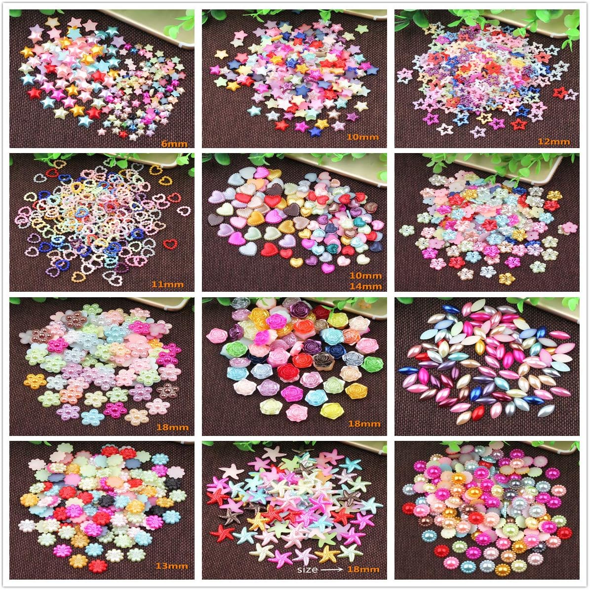 Random Color 1000PCS Craft ABS Star Imitation Pearls Resin Slime Beads Flatback Buttons for Handcraft Accessories Scrapbooking Phone Case Decor Bead Loose Beads Gem DIY (Style 2)