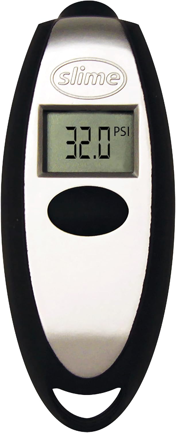 Slime’s Digital Tire Gauge provides a simple way to ensure your tires stay properly inflated. Slime is a well-known brand for flat tire prevention and repair. Maintaining proper tire pressure reduces fuel consumption and maximizes tire tread life, making your tires last longer and perform better.