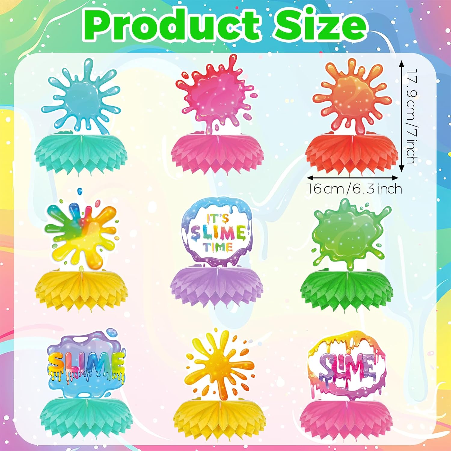 Slime Birthday Party Decoration Honeycomb Centerpieces Slime Splatter Splash Colorful Theme Table Topper It’s Slime Time Table Decor for Slime Themed Birthday Party Supplies