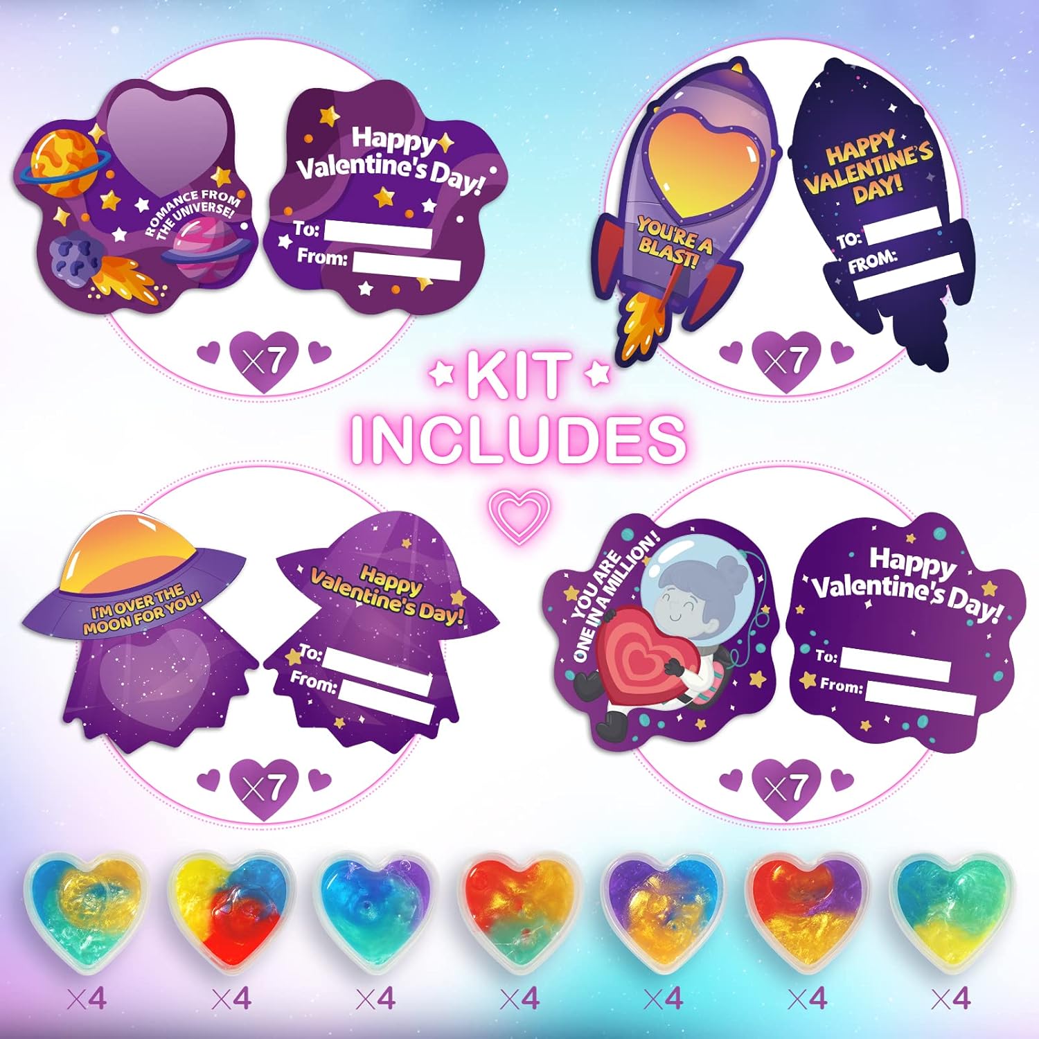 Valentines Day Cards for Kids Classroom – 28 Set of Galaxy Slime with Valentine’s Day Card Bulk, School Classroom Valentine’s Gifts Exchange, Valentine’s Party Favors/Events and Prizes for Kids