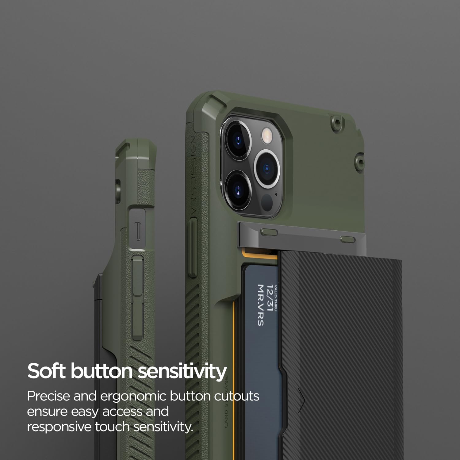 VRS DESIGN Damda Glide Pro Phone Case for iPhone 12/12 Pro, with [4 Cards] Premium Sturdy [Semi Auto] Credit Card Holder Slot Wallet for iPhone 12/12 Pro 6.1 inch(2020) Logo Green